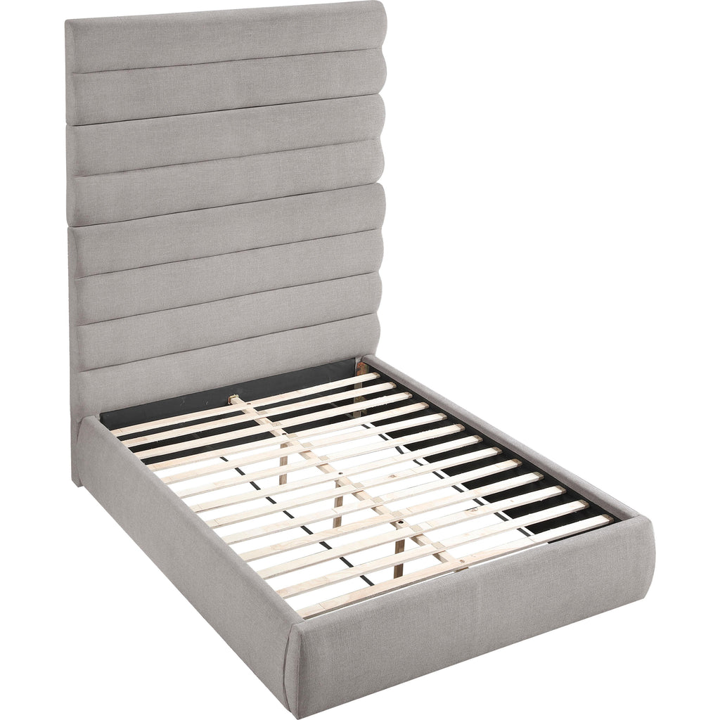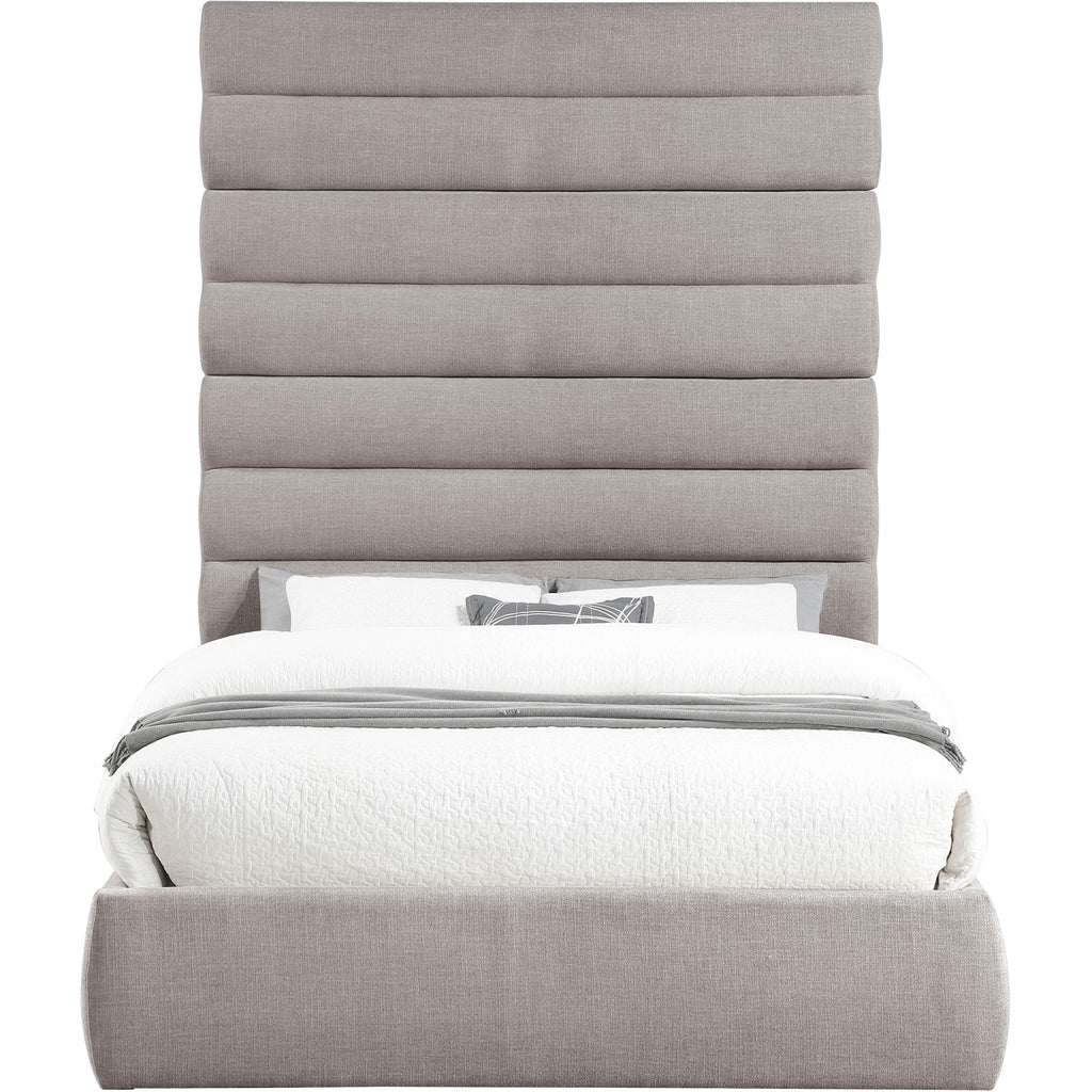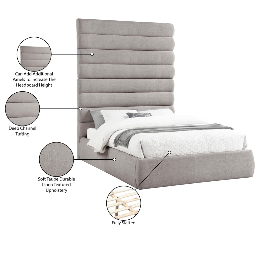 Meridian Adam Taupe Linen Textured Fabric Queen Bed