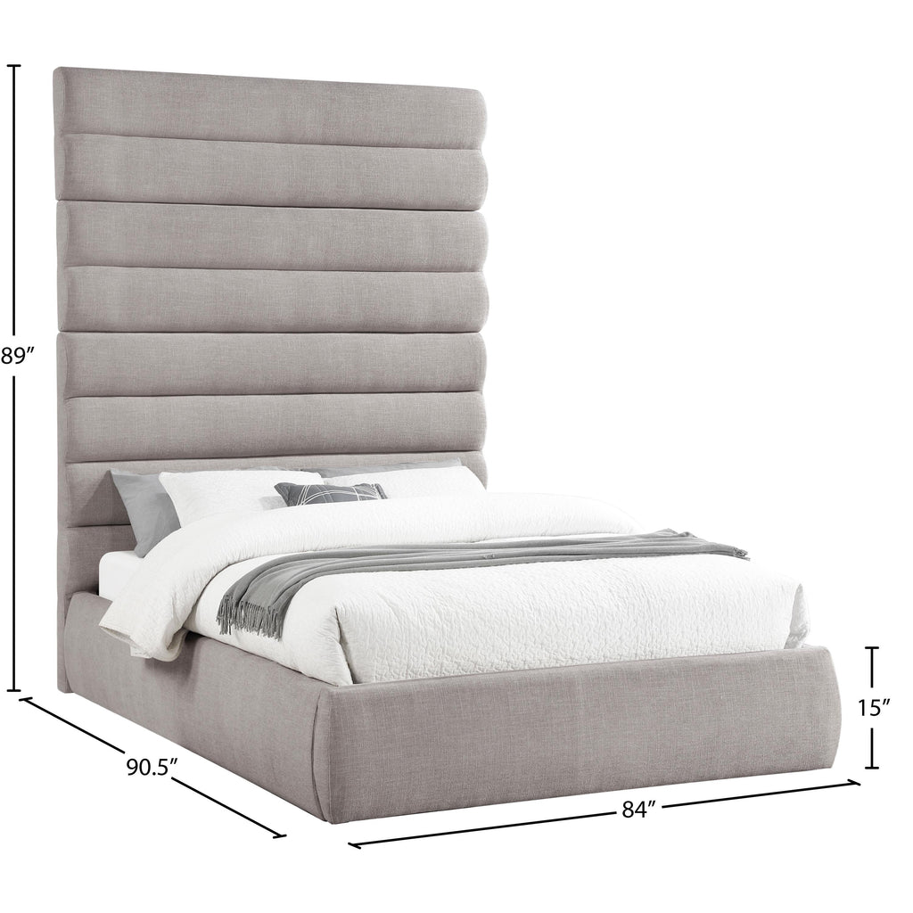 Meridian Adam Taupe Linen Textured Fabric King Bed