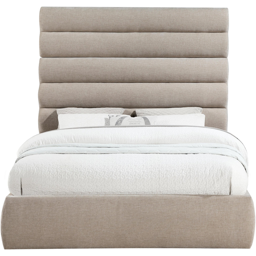 Meridian Adam Beige Linen Textured Fabric Queen Bed