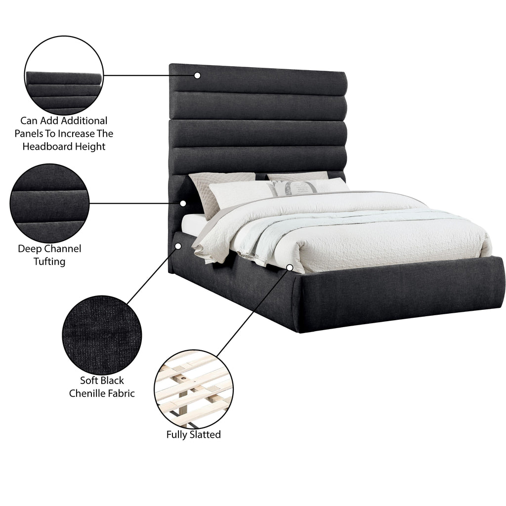 Meridian Adam Black Chenille Fabric King Bed