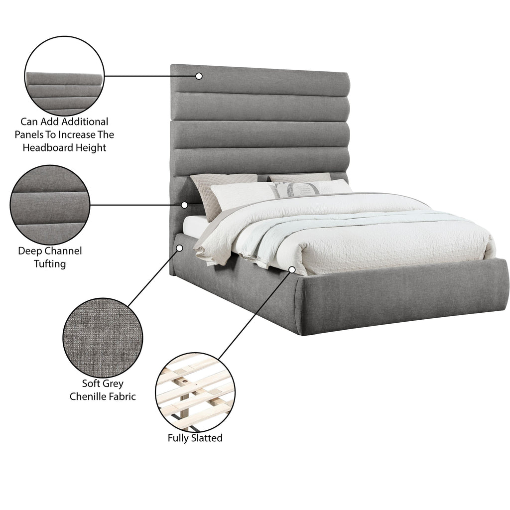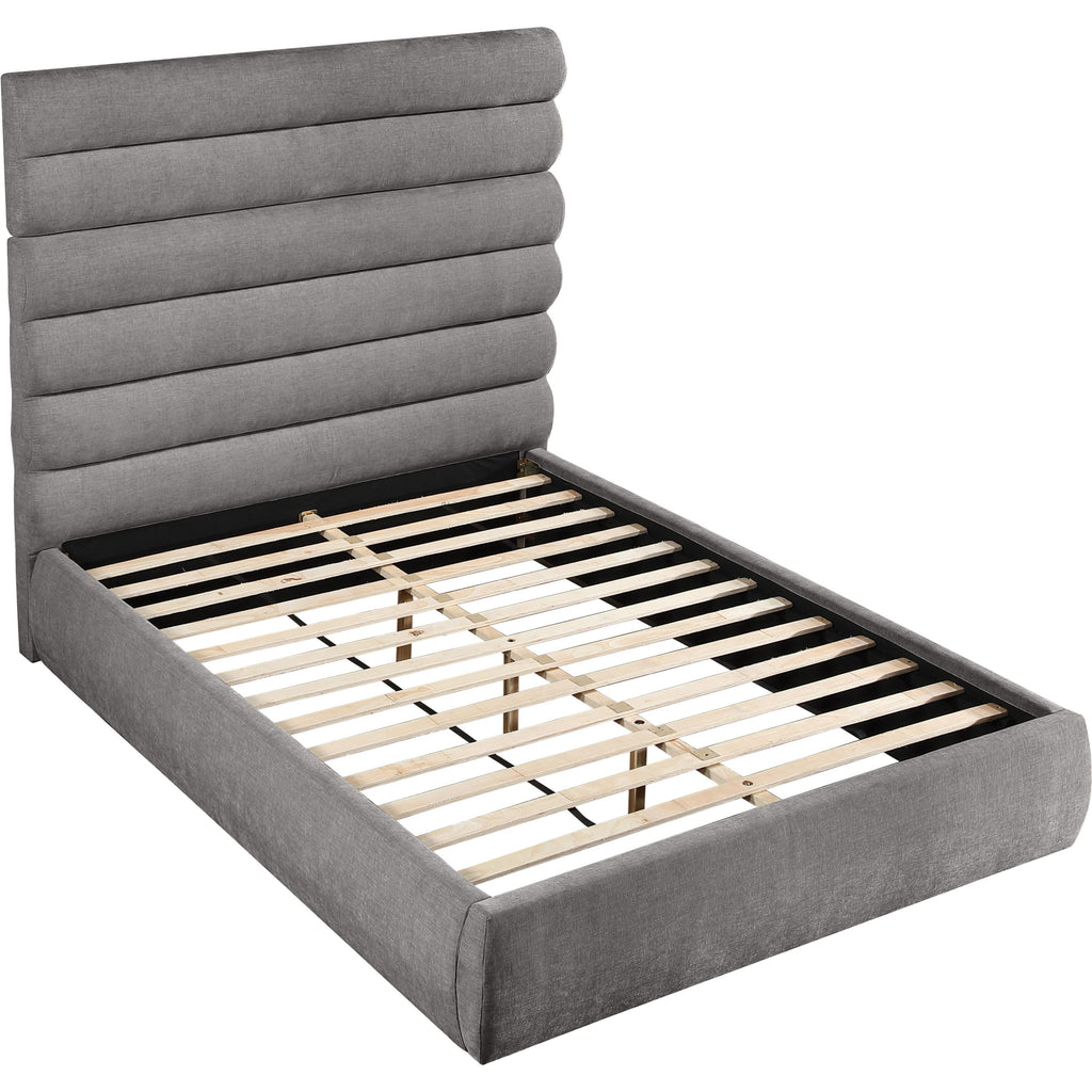 Meridian Adam Grey Linen Textured Fabric Queen Bed