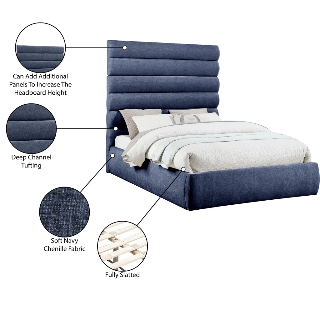 Meridian Adam Navy Chenille Fabric Queen Bed