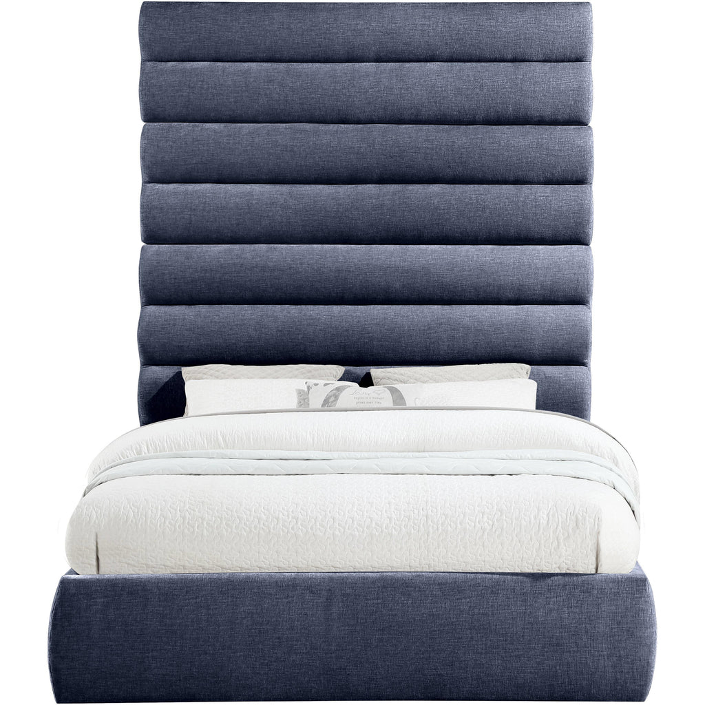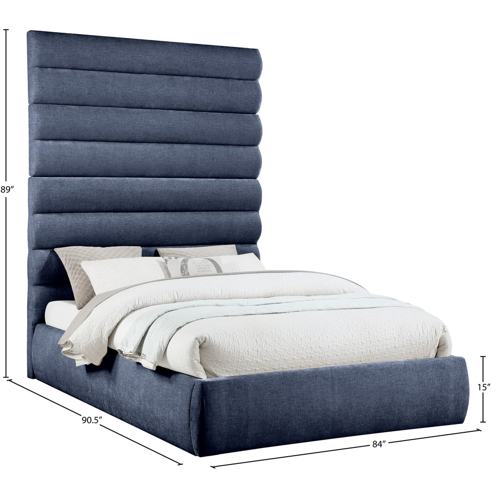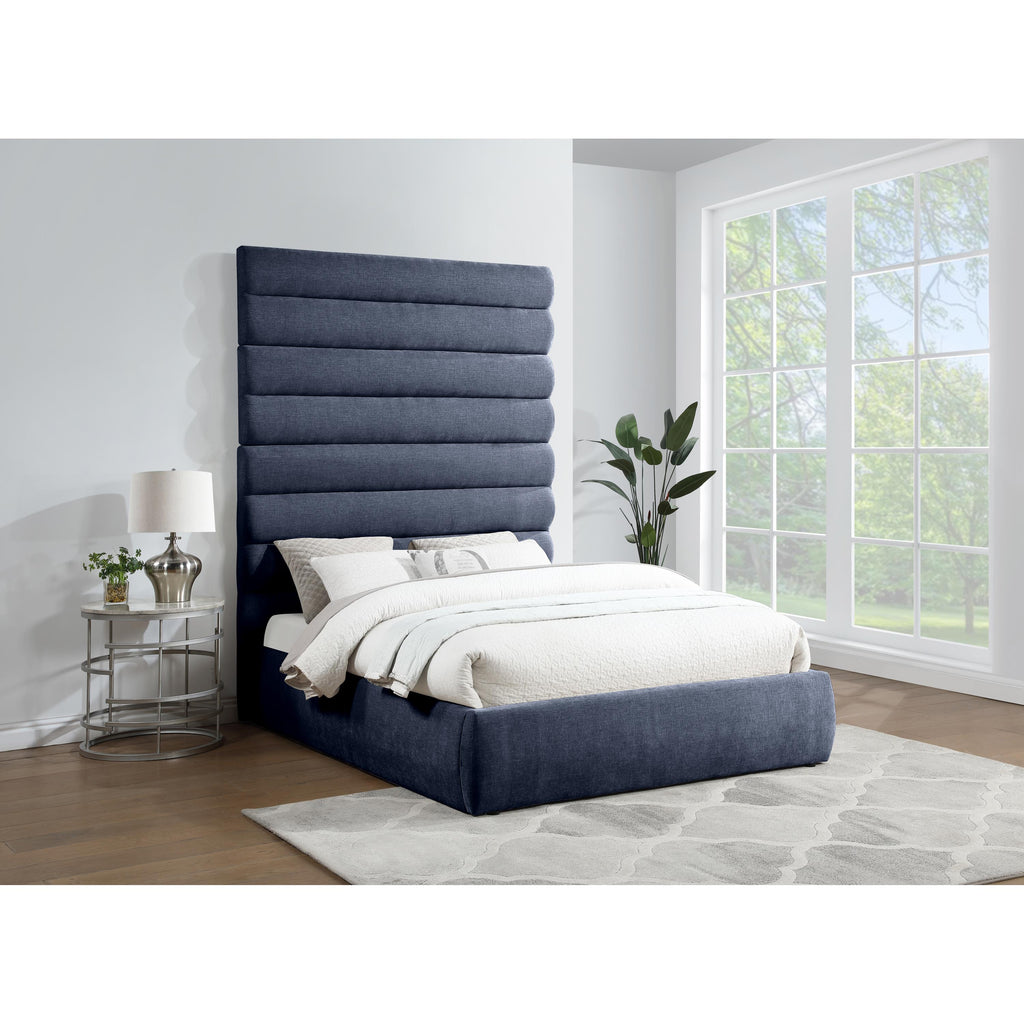 Meridian Adam Navy Chenille Fabric Queen Bed