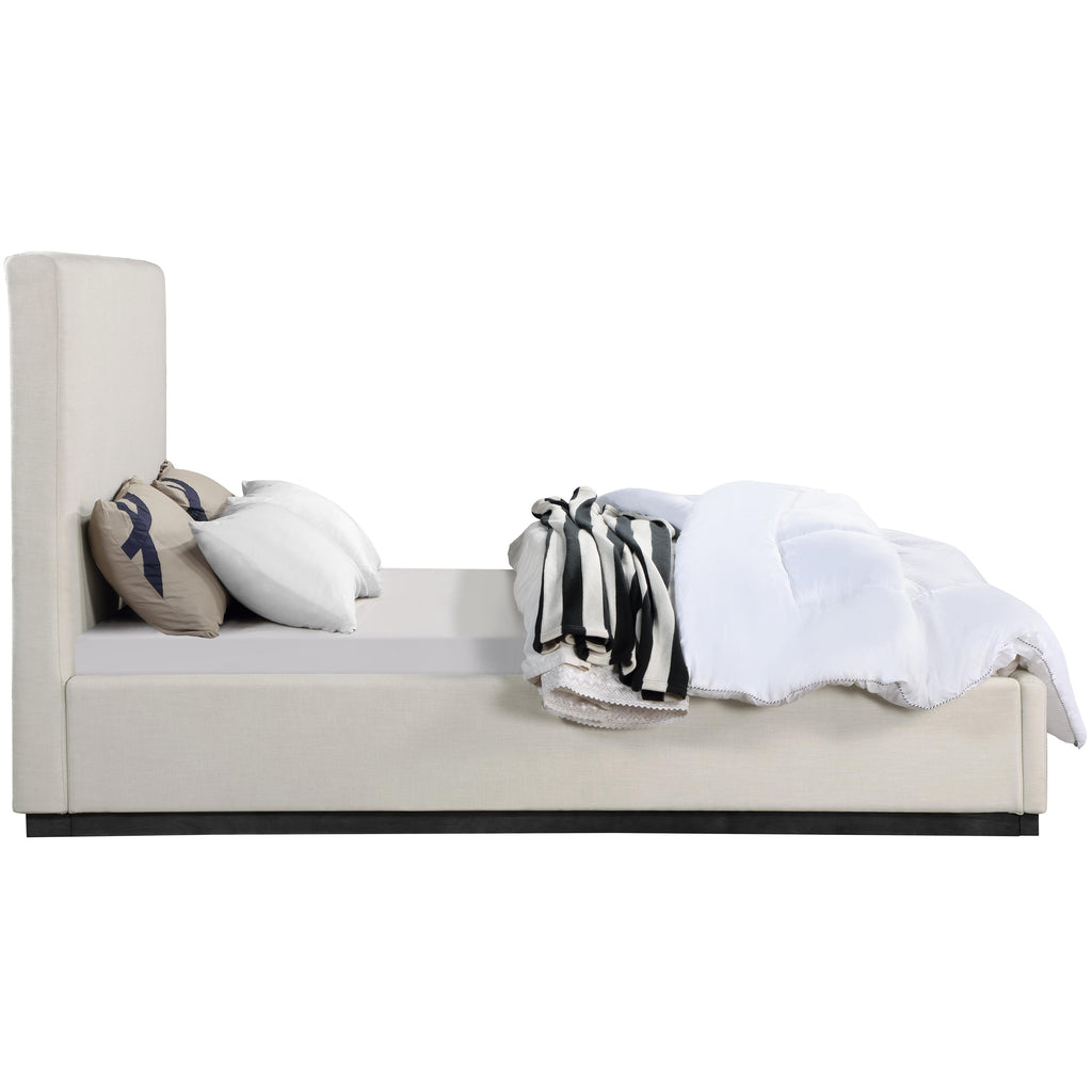 Meridian Alfie Beige Linen Textured Fabric Upholstered King Bed