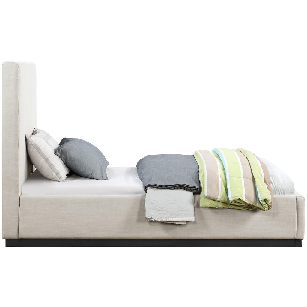Meridian Alfie Beige Linen Textured Fabric Upholstered King Bed