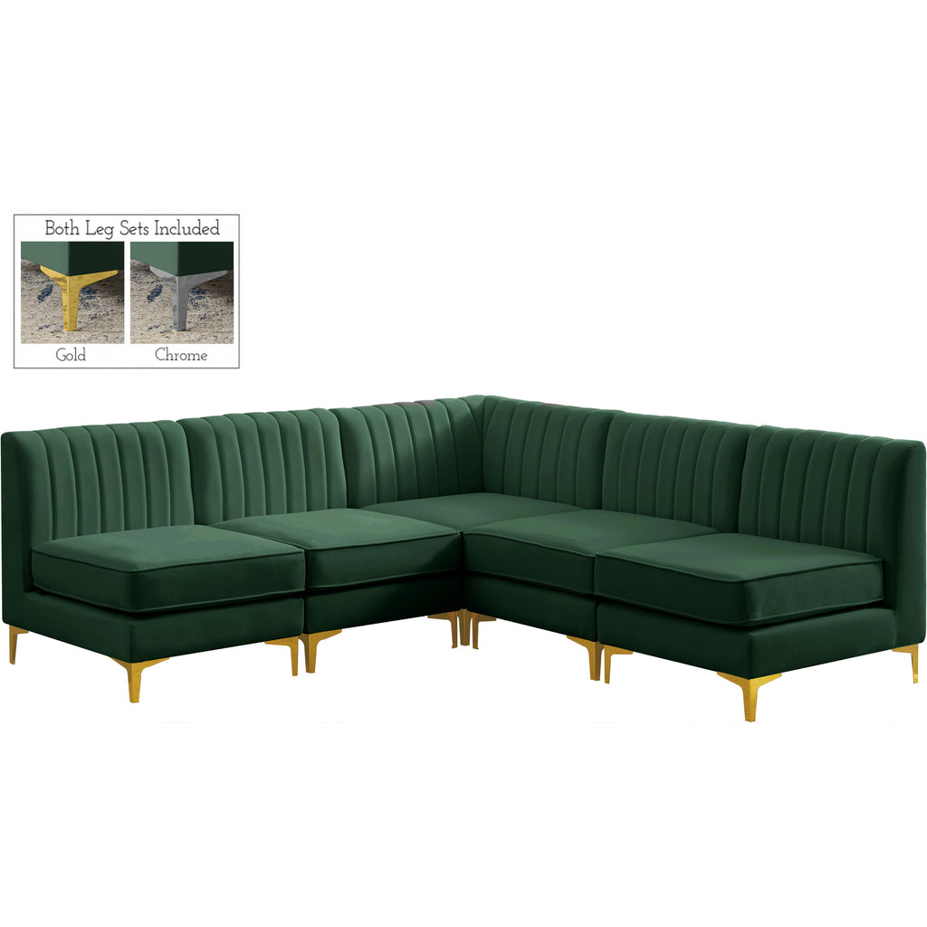 Meridian Alina Green Velvet Modular Sectional