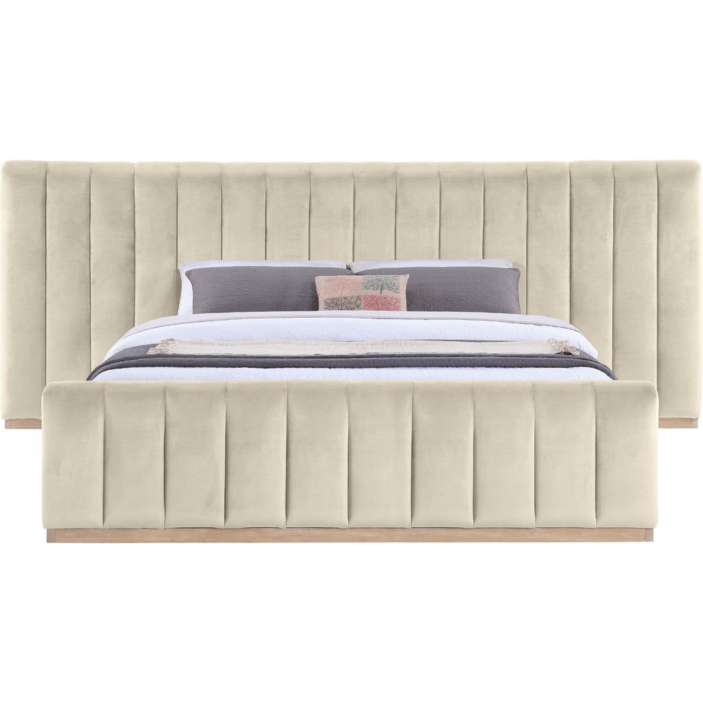 Meridian Amara Cream Velvet Upholstered King Bed