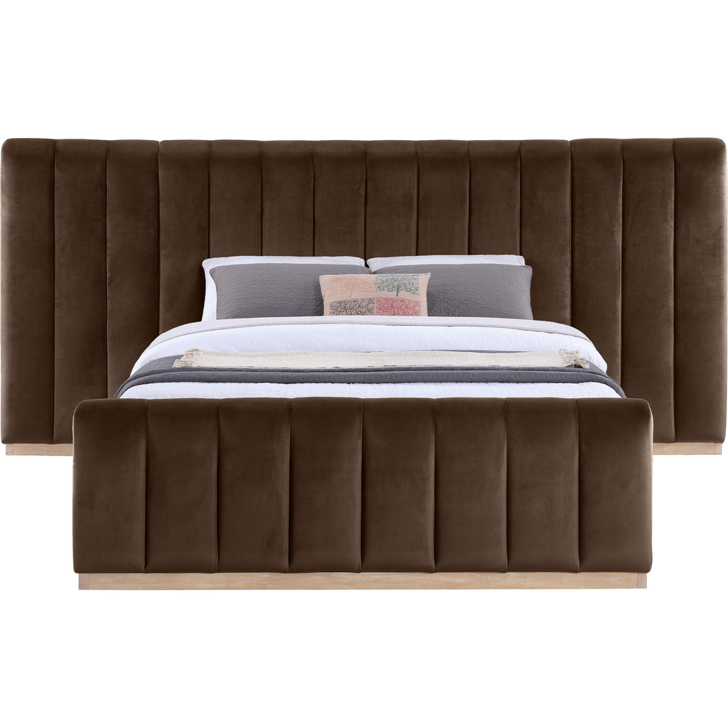 Meridian Amara Brown Velvet Upholstered Queen Bed