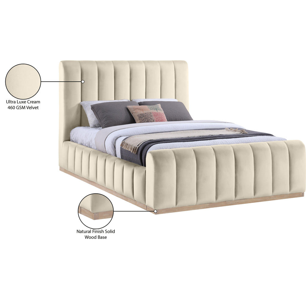Meridian Amara Cream Velvet Upholstered Queen Bed