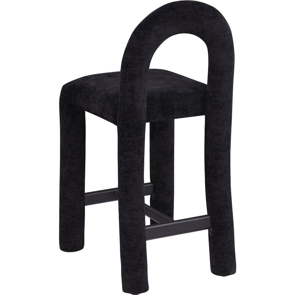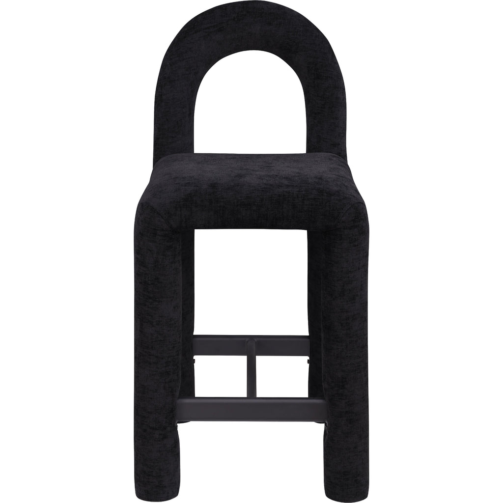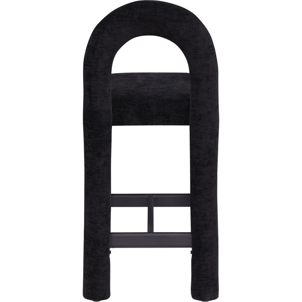 Meridian Amari Black Vegan Leather and Boucle Fabric Stool