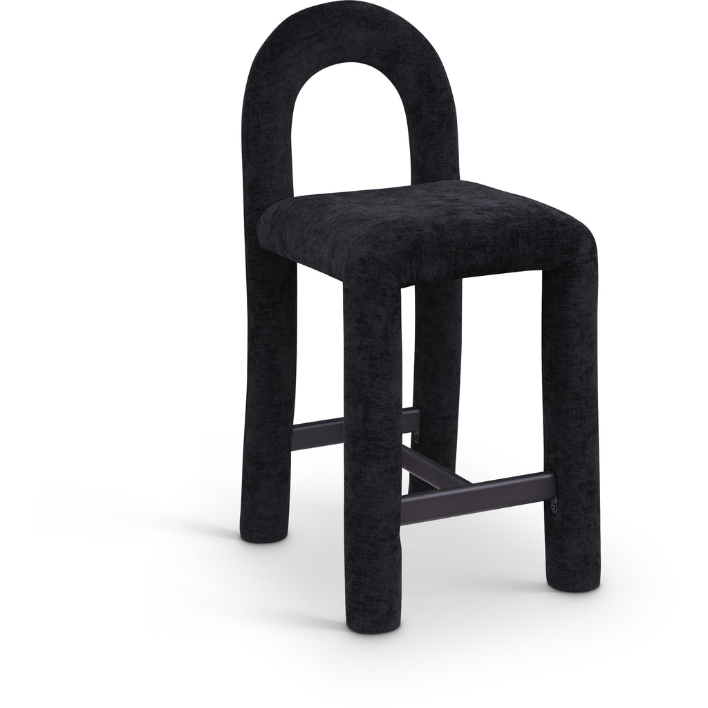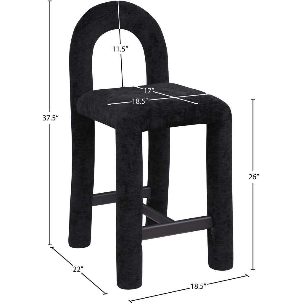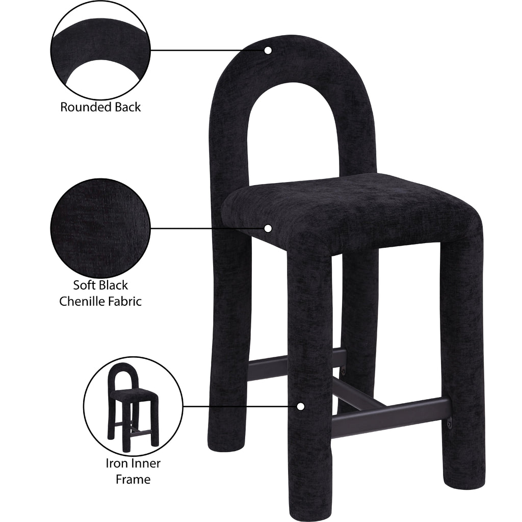 Meridian Amari Black Vegan Leather and Boucle Fabric Stool