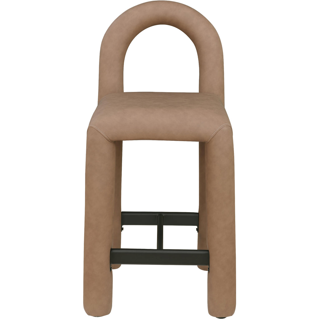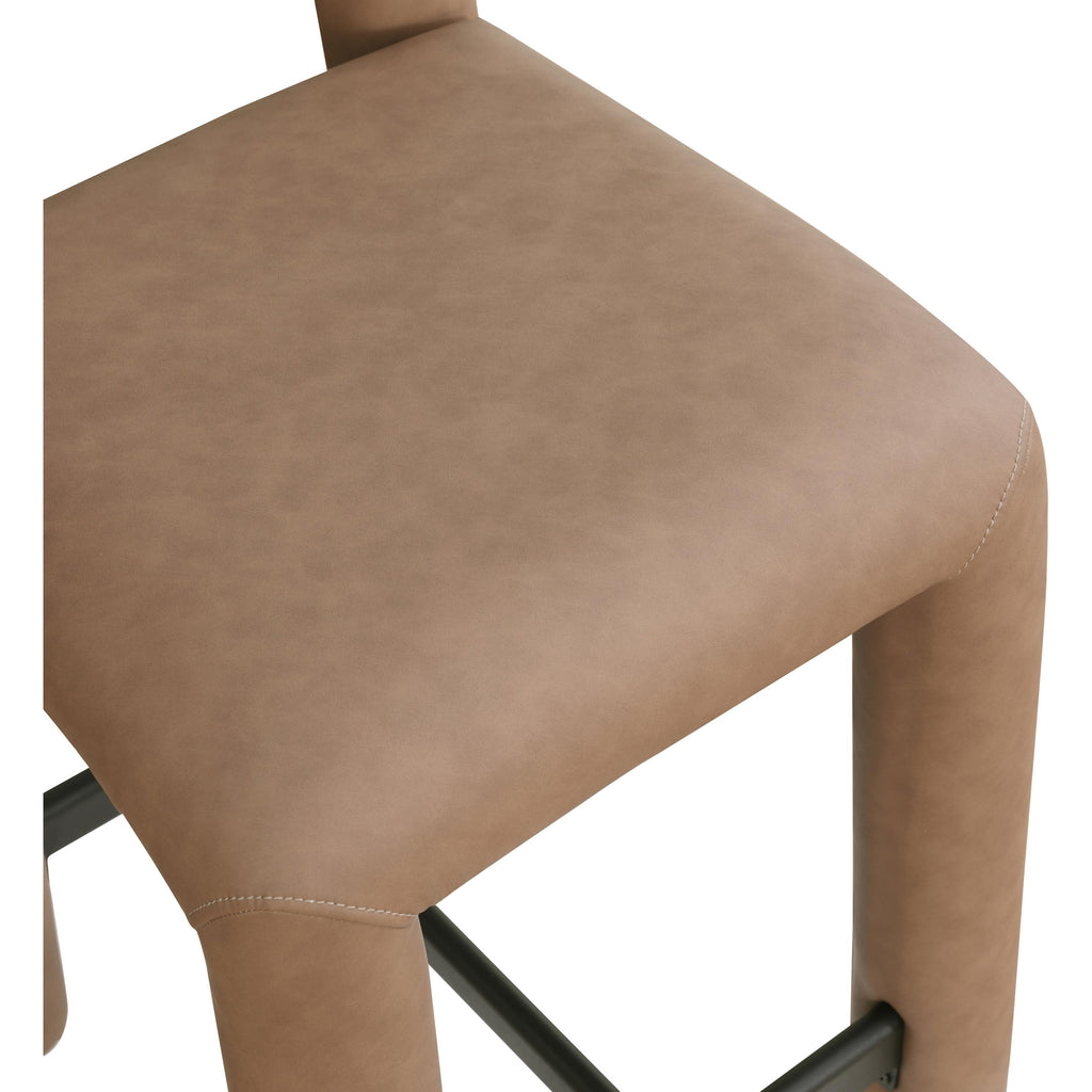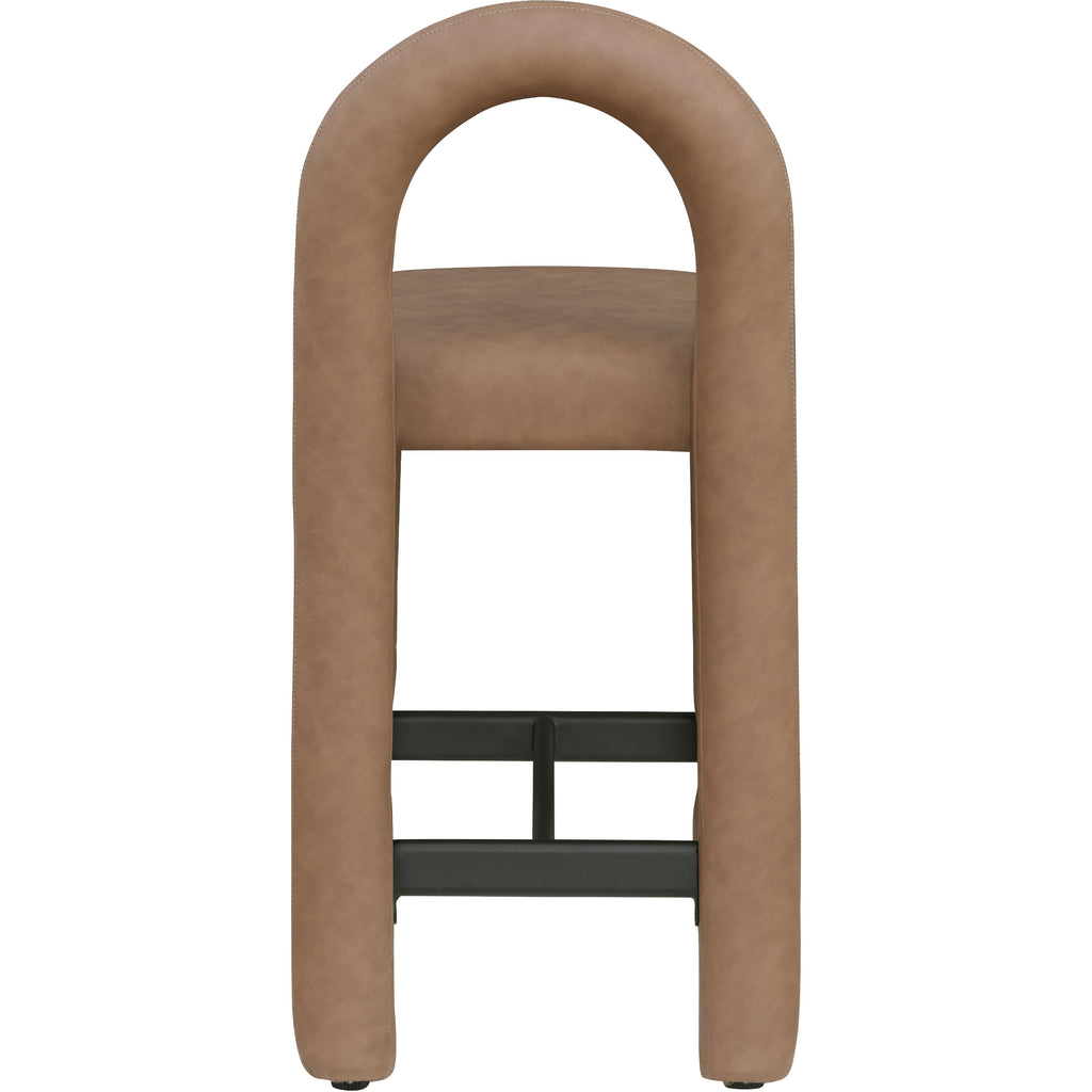 Meridian Amari Brown Vegan Leather and Boucle Fabric Stool