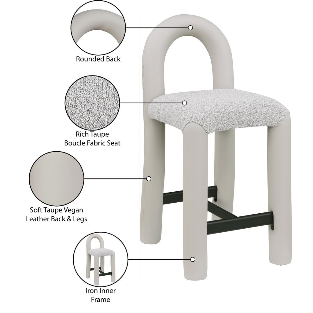 Meridian Amari Taupe Vegan Leather and Boucle Fabric Dining Chair