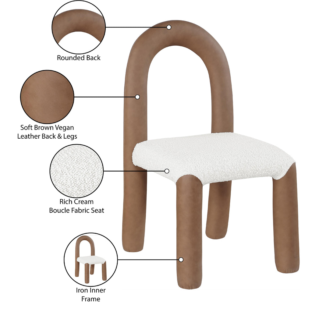 Meridian Amari Brown Vegan Leather and Boucle Fabric Stool