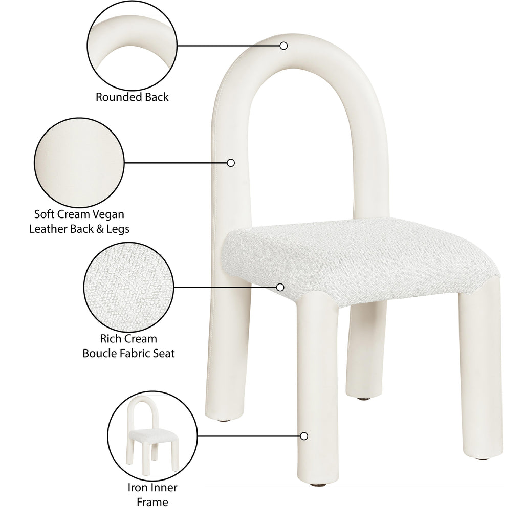 Meridian Amari Cream Vegan Leather and Boucle Fabric Stool