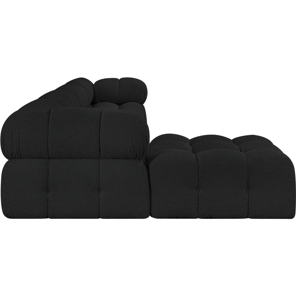 Meridian Ames 136" Black Boucle Fabric Upholstered 4 pc Modular Sofa