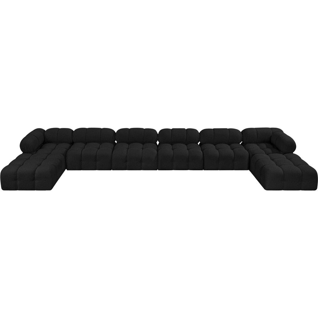 Meridian Ames 136" Black Boucle Fabric Upholstered 6 pc Modular Sectional