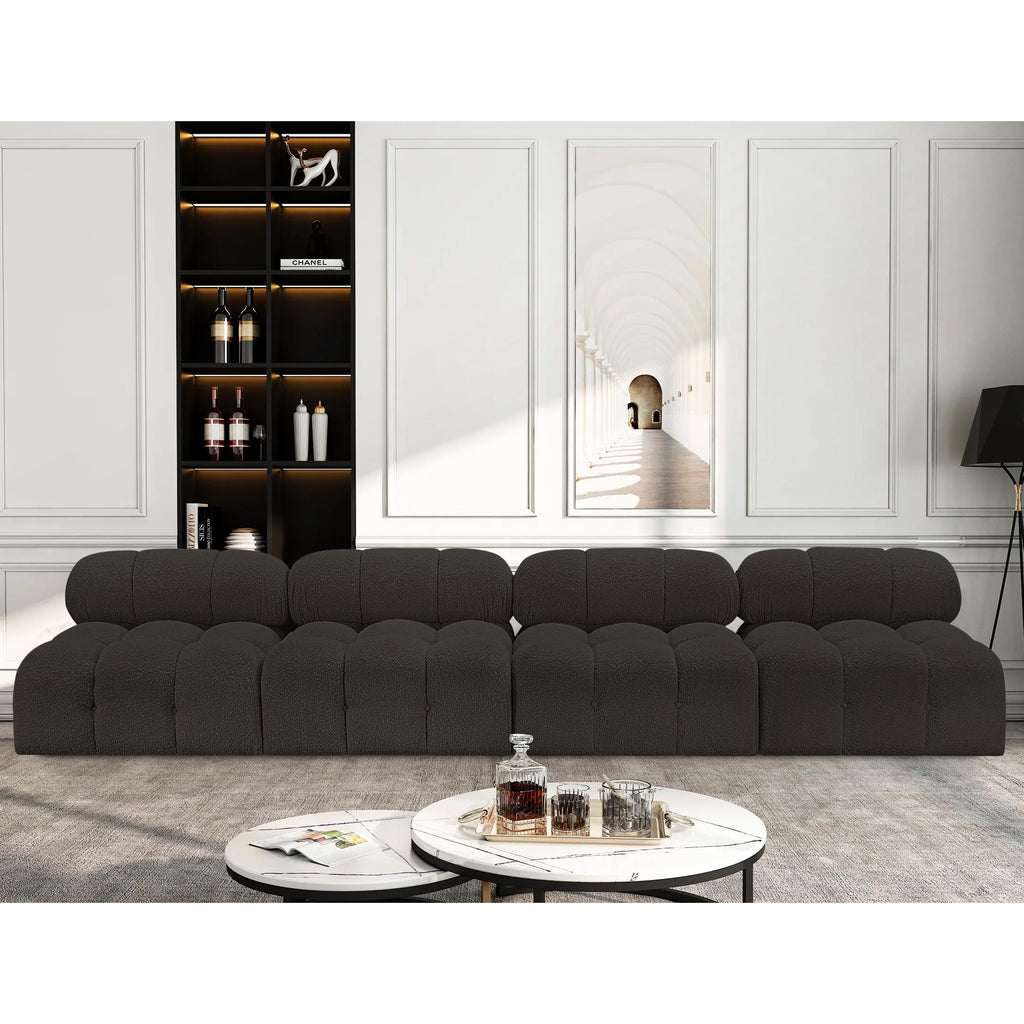 Meridian Ames 136" Brown Boucle Fabric Upholstered 4 pc Modular Sofa