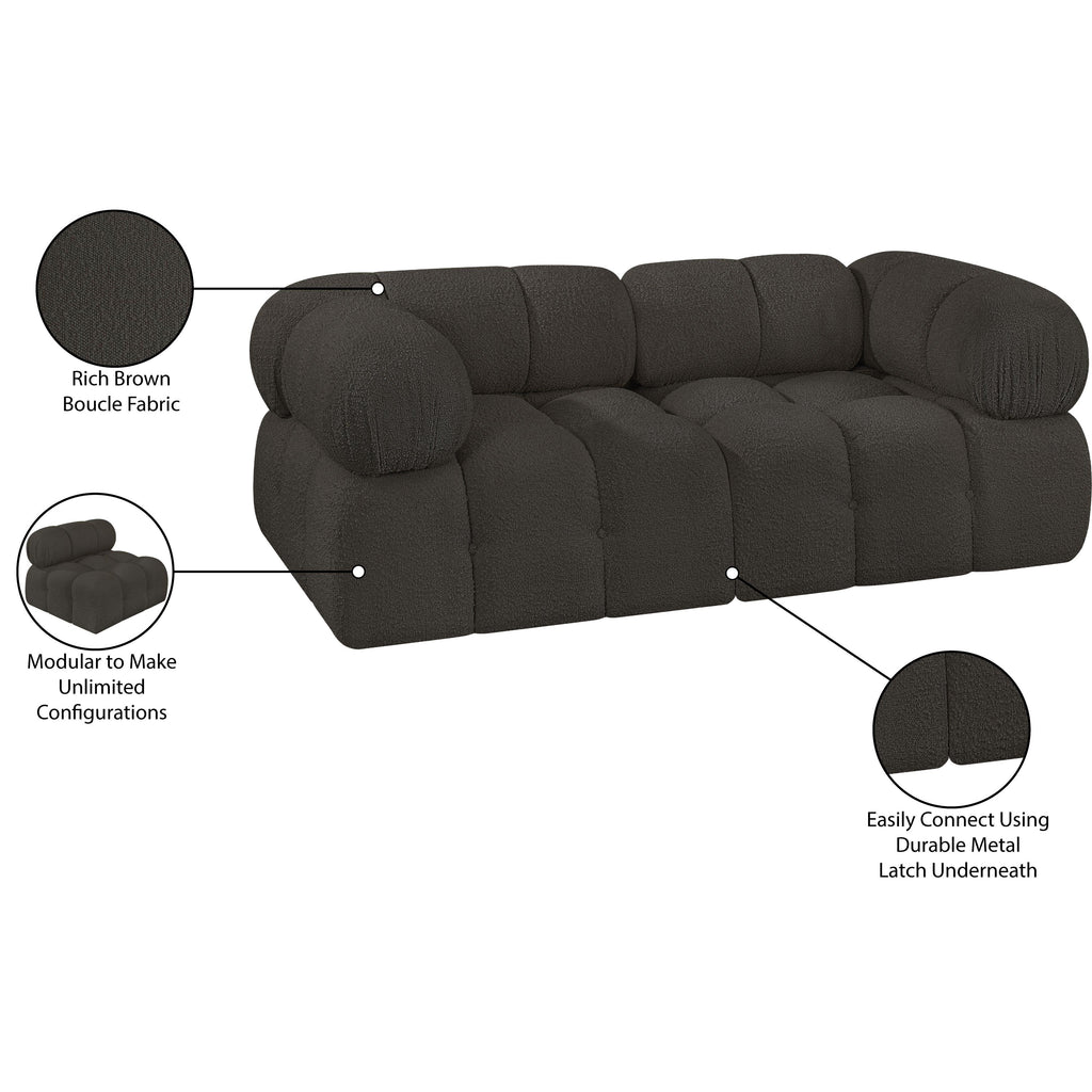 Meridian Ames 68" Brown Boucle Fabric Upholstered 2 pc Armless Modular Loveseat