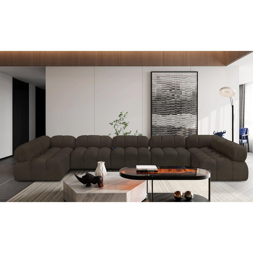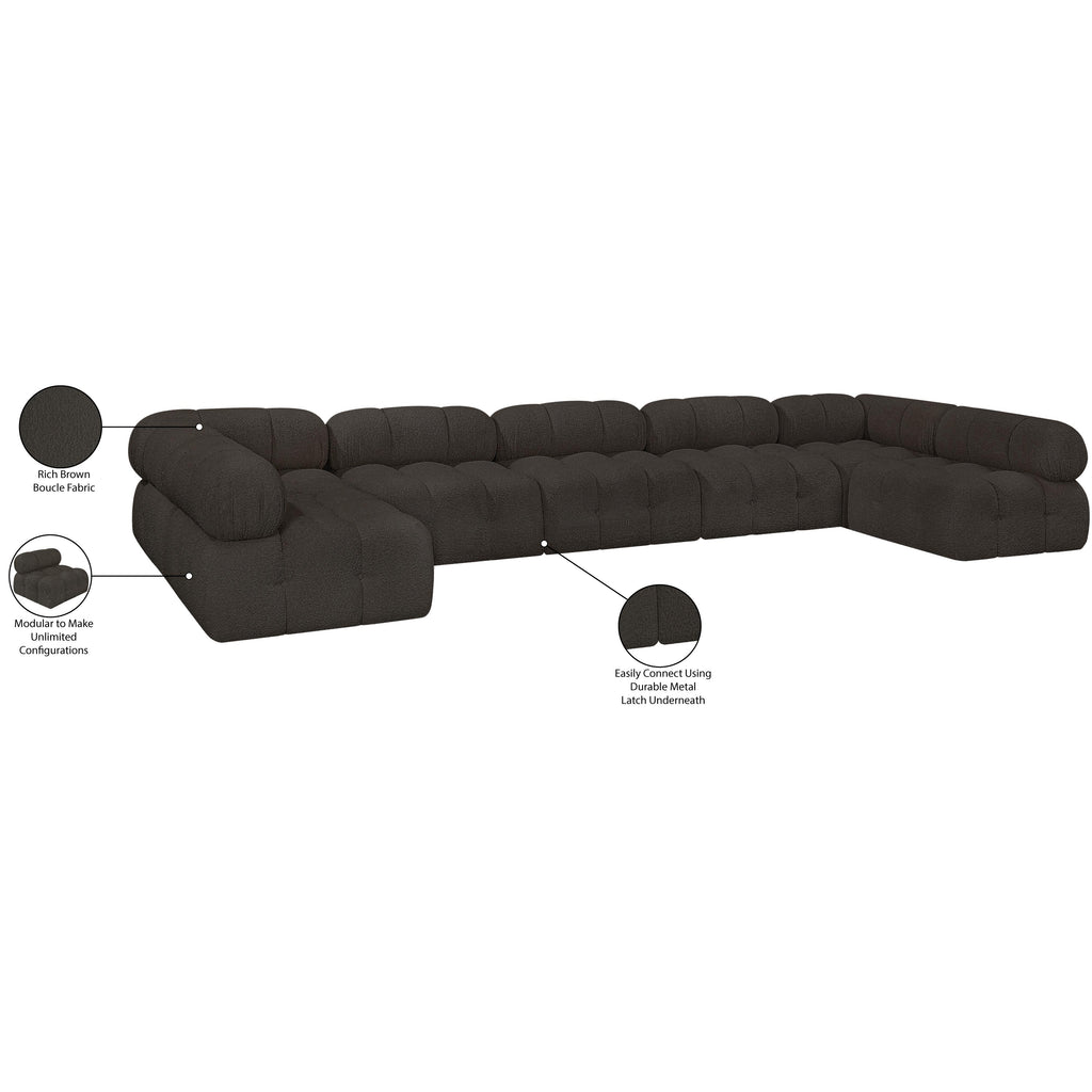 Meridian Ames 136" Brown Boucle Fabric Upholstered 6 pc Modular Sectional