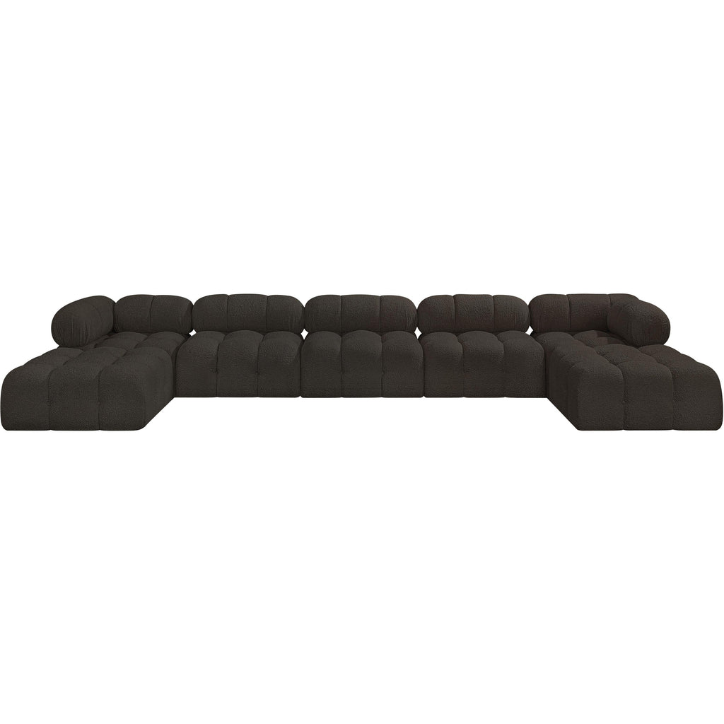 Meridian Ames 136" Brown Boucle Fabric Upholstered 6 pc Modular Sectional