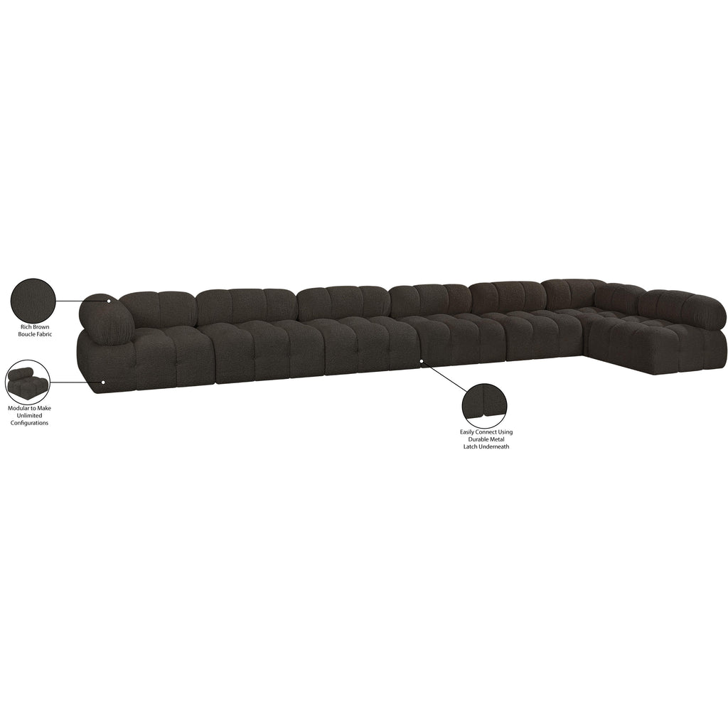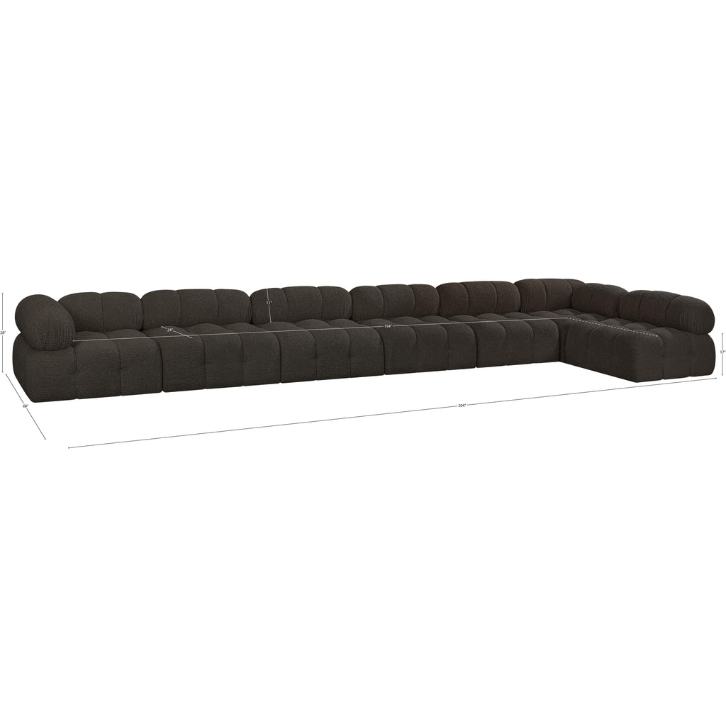 Meridian Ames 136" Brown Boucle Fabric Upholstered 6 pc Modular Sectional