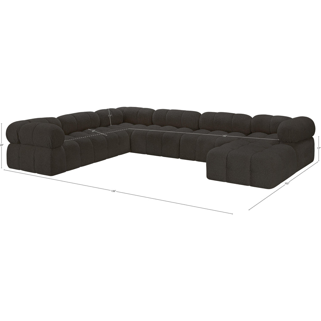 Meridian Ames 136" Brown Boucle Fabric Upholstered 6 pc Modular Sectional