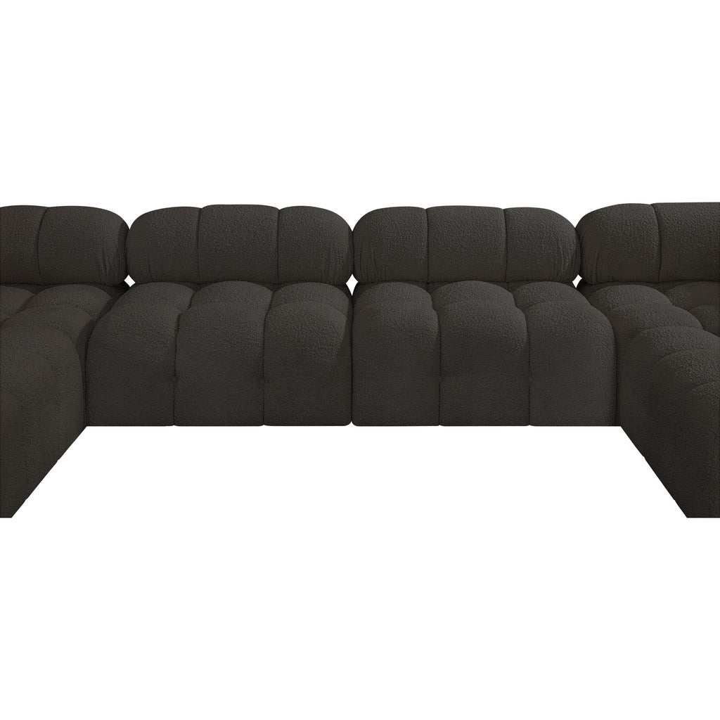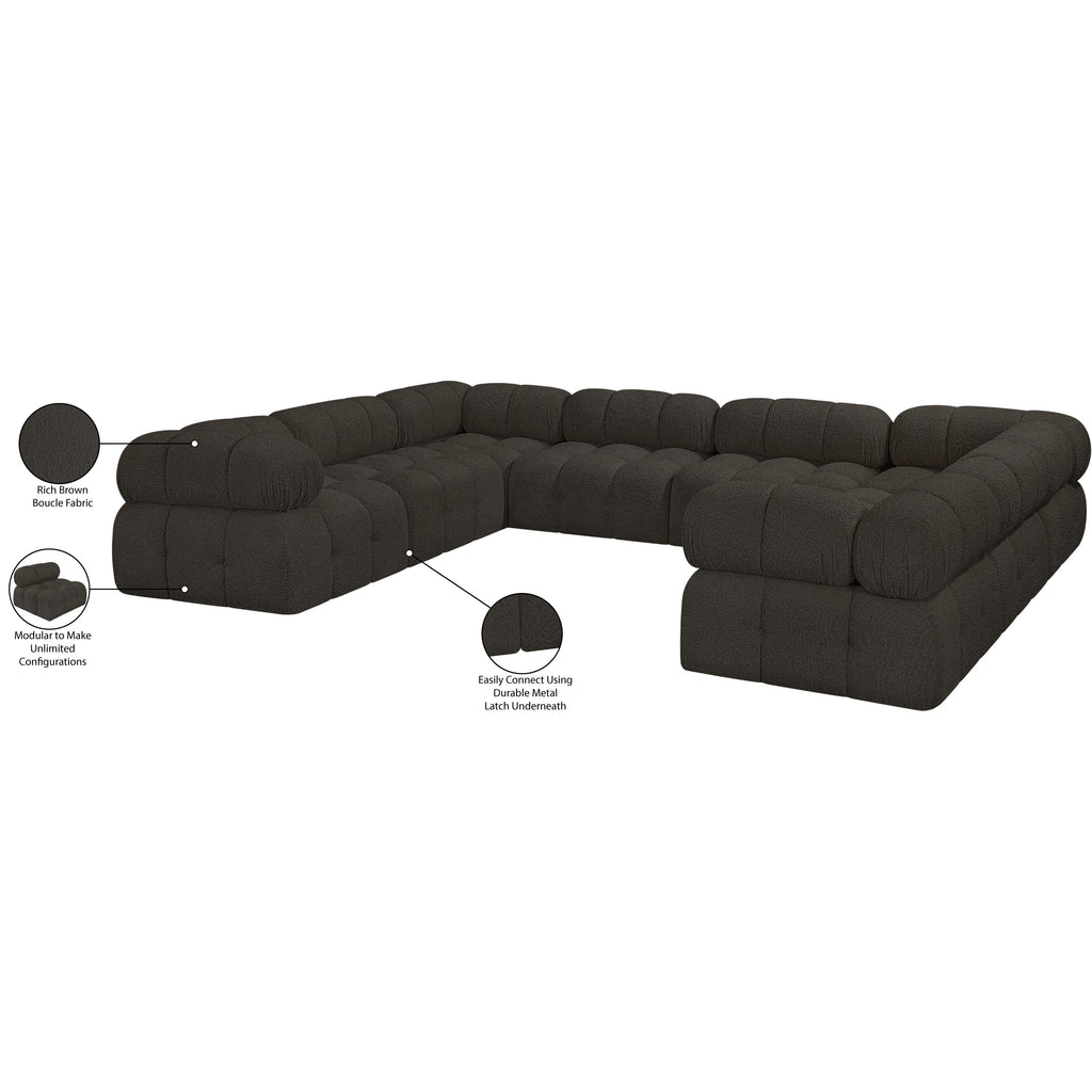 Meridian Ames 136" Brown Boucle Fabric Upholstered 6 pc Modular Sectional