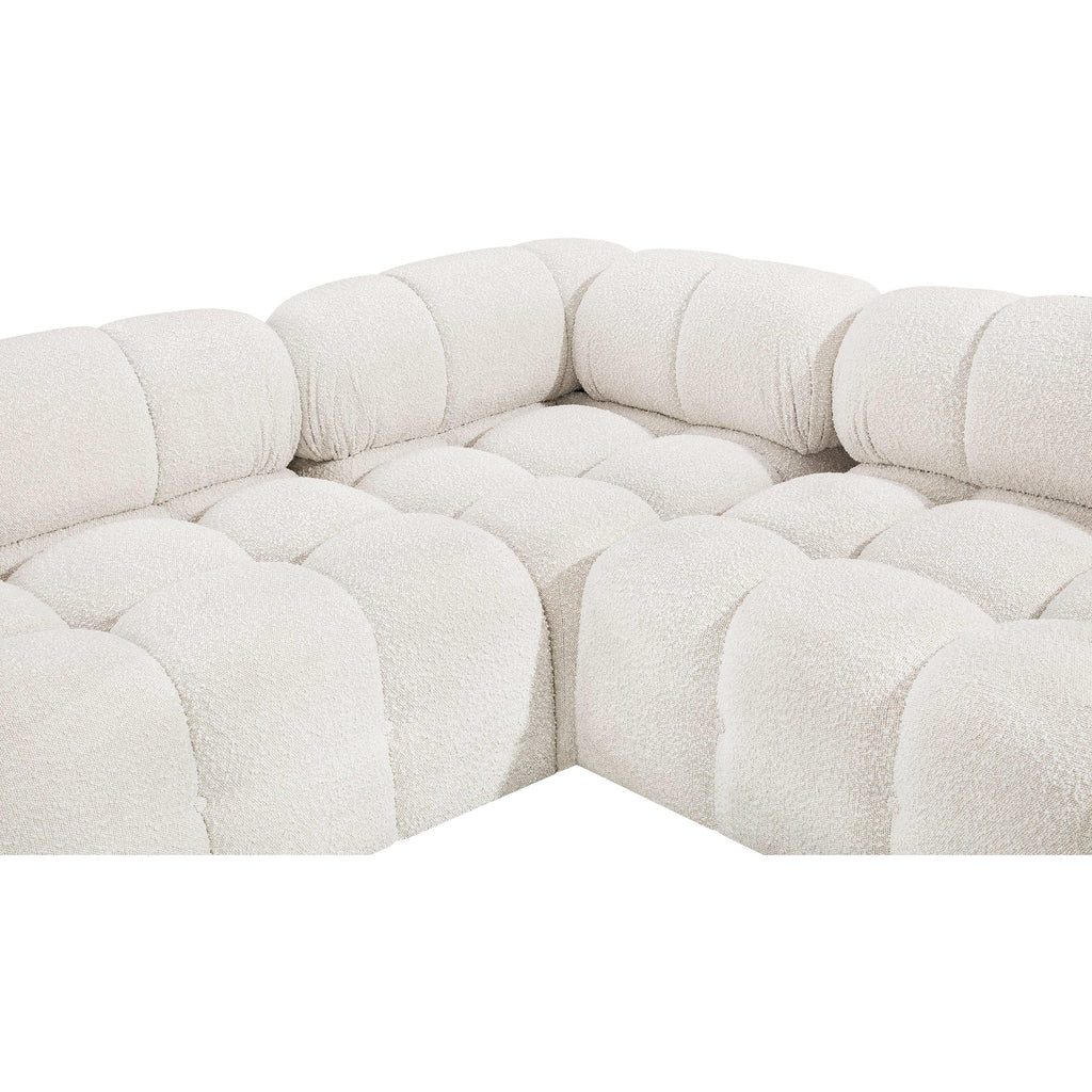 Meridian Ames 136" Cream Boucle Fabric Upholstered 4 pc Modular Sofa