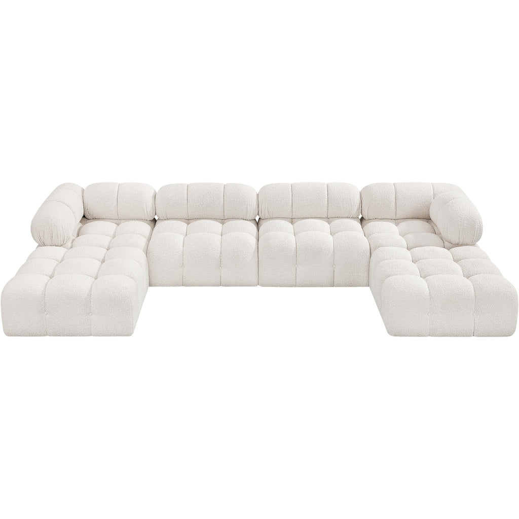 Meridian Ames 136" Cream Boucle Fabric Upholstered 6 pc Modular Sectional