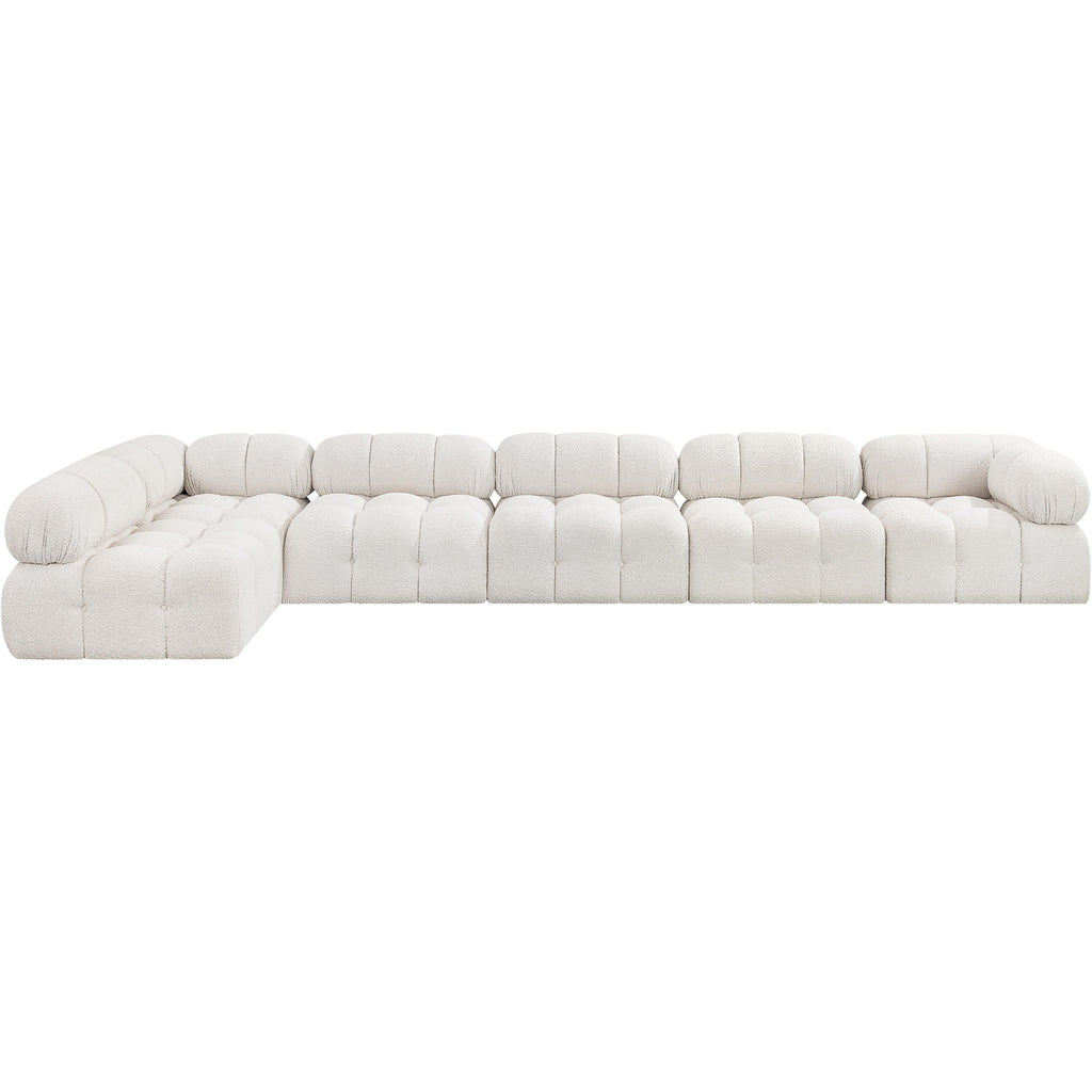 Meridian Ames 136" Cream Boucle Fabric Upholstered 6 pc Modular Sectional
