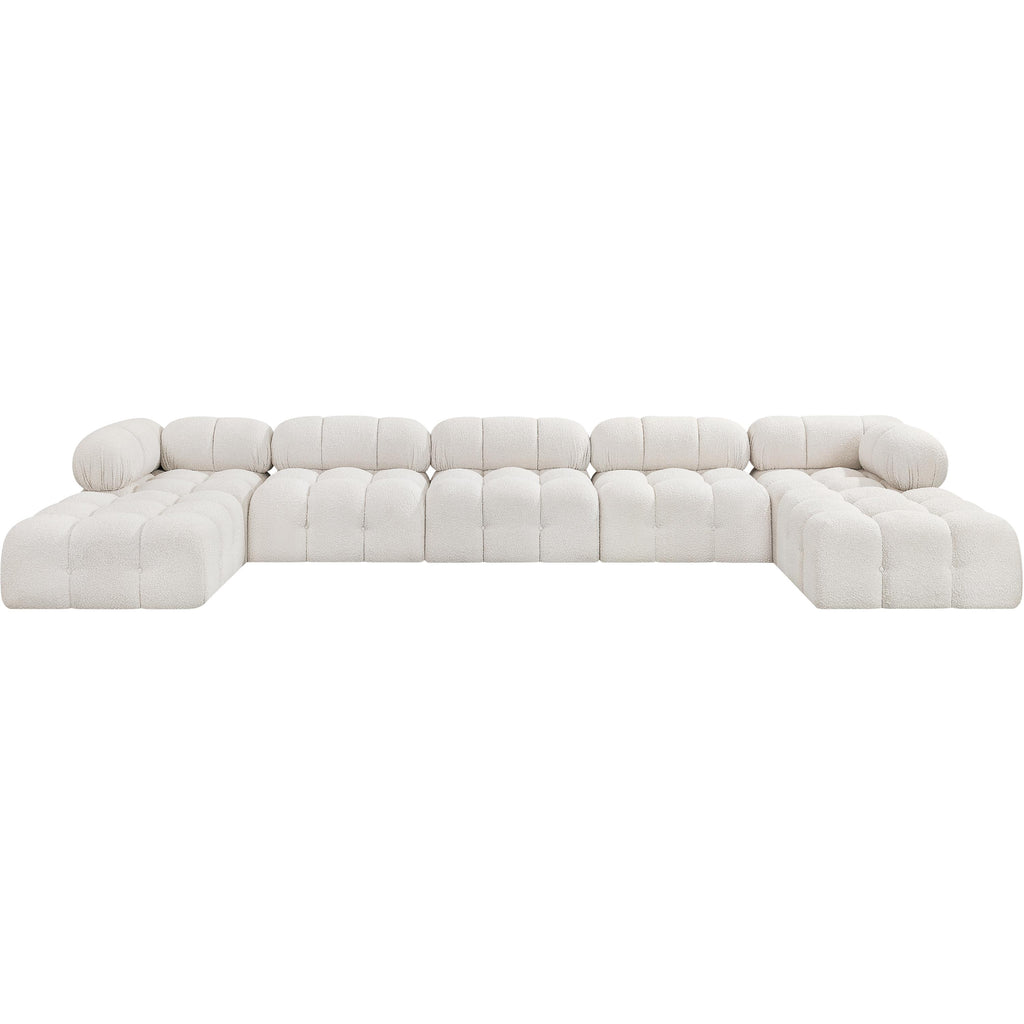 Meridian Ames 136" Cream Boucle Fabric Upholstered 6 pc Modular Sectional