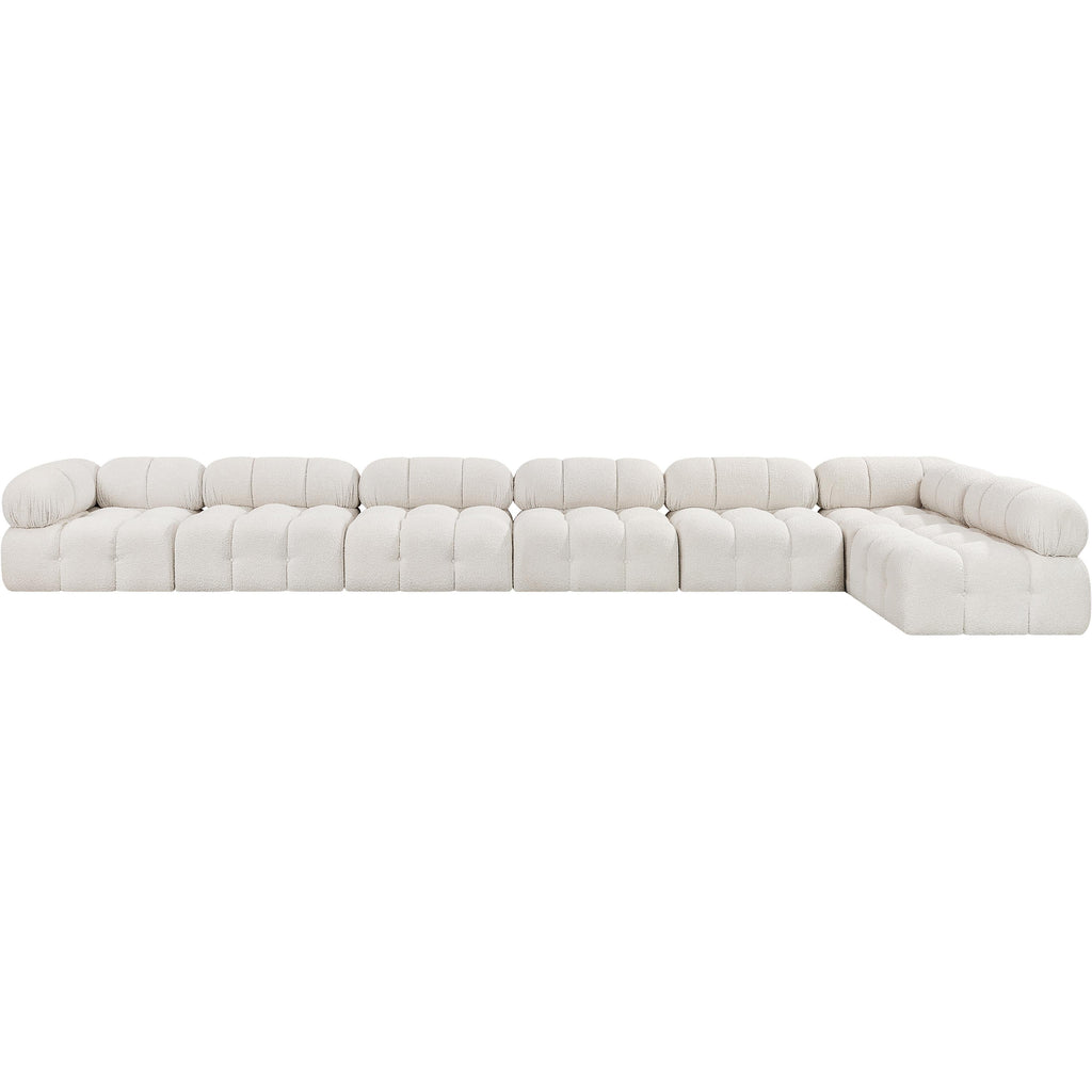 Meridian Ames 136" Cream Boucle Fabric Upholstered 6 pc Modular Sectional
