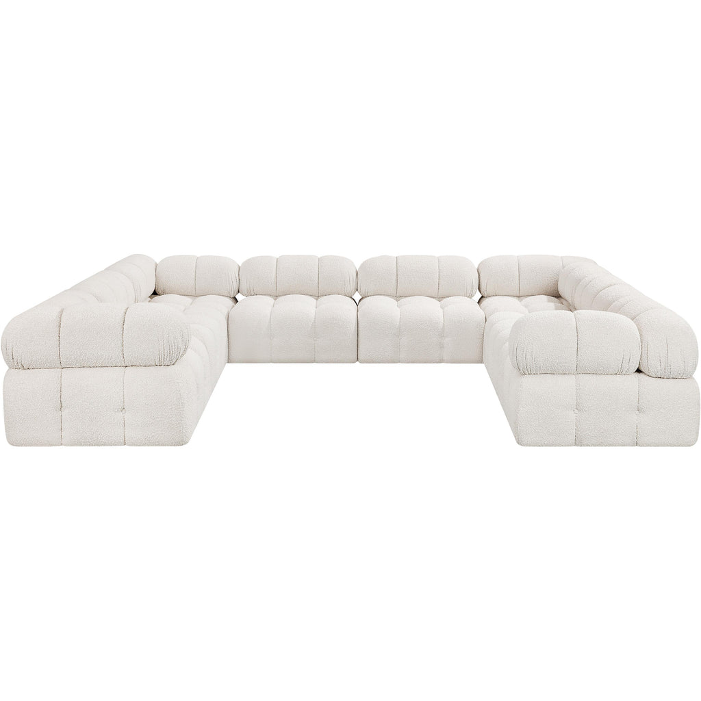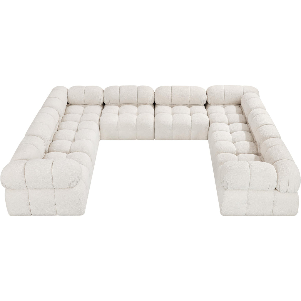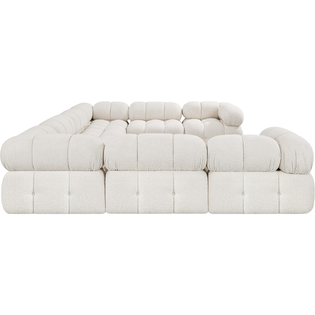 Meridian Ames 136" Cream Boucle Fabric Upholstered 6 pc Modular Sectional
