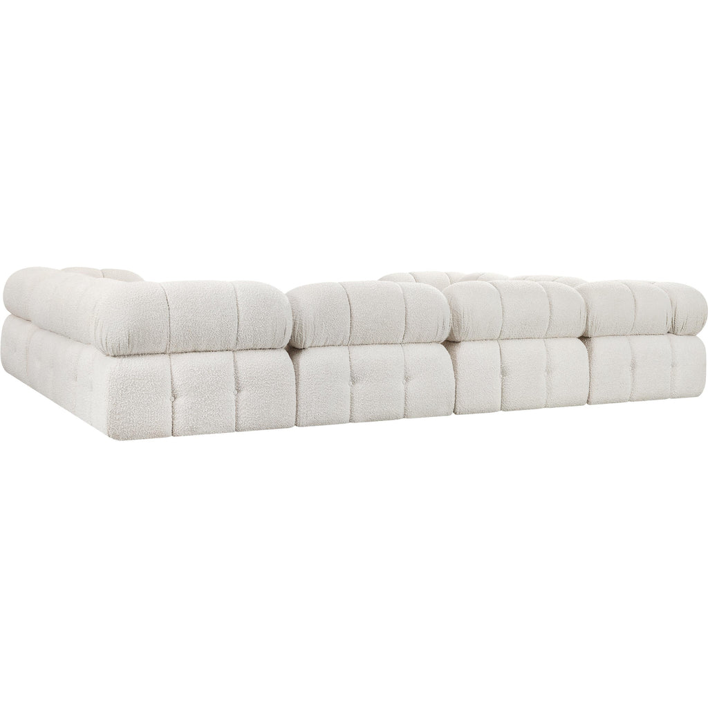Meridian Ames 136" Cream Boucle Fabric Upholstered 4 pc Modular Sofa