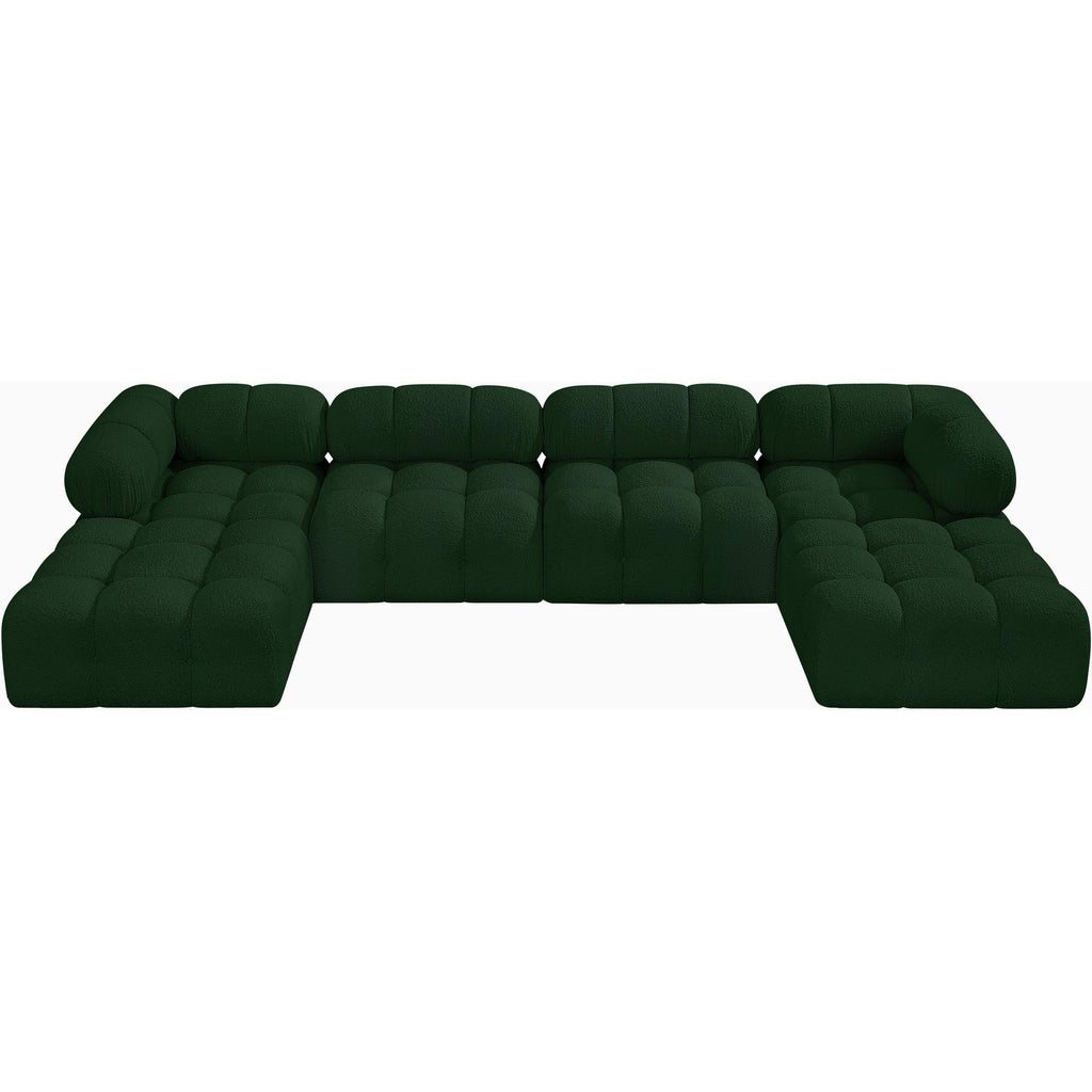 Meridian Ames 136" Green Boucle Fabric Upholstered 6 pc Modular Sectional