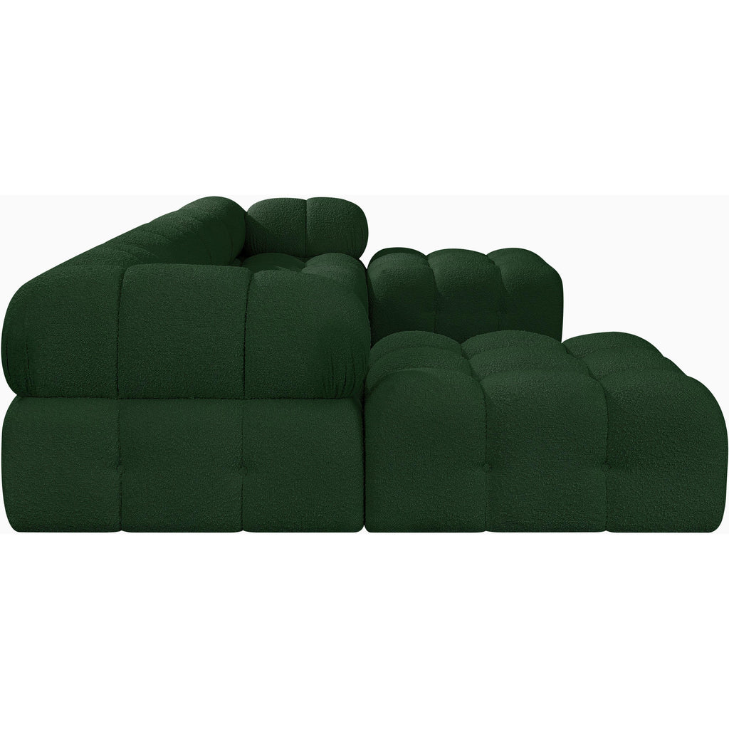 Meridian Ames 136" Green Boucle Fabric Upholstered 4 pc Modular Sofa
