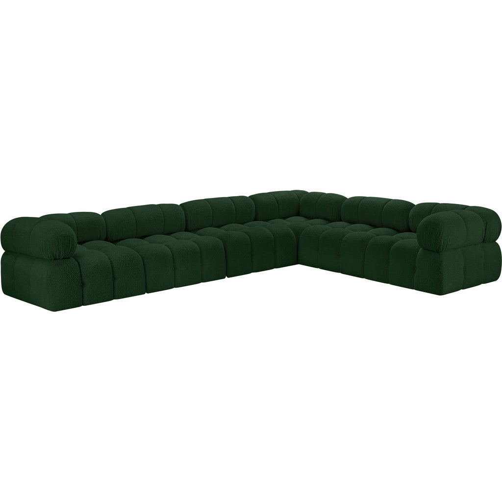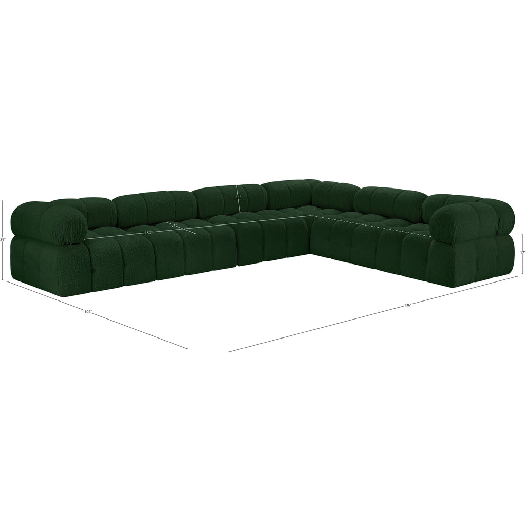 Meridian Ames 136" Green Boucle Fabric Upholstered 6 pc Modular Sectional