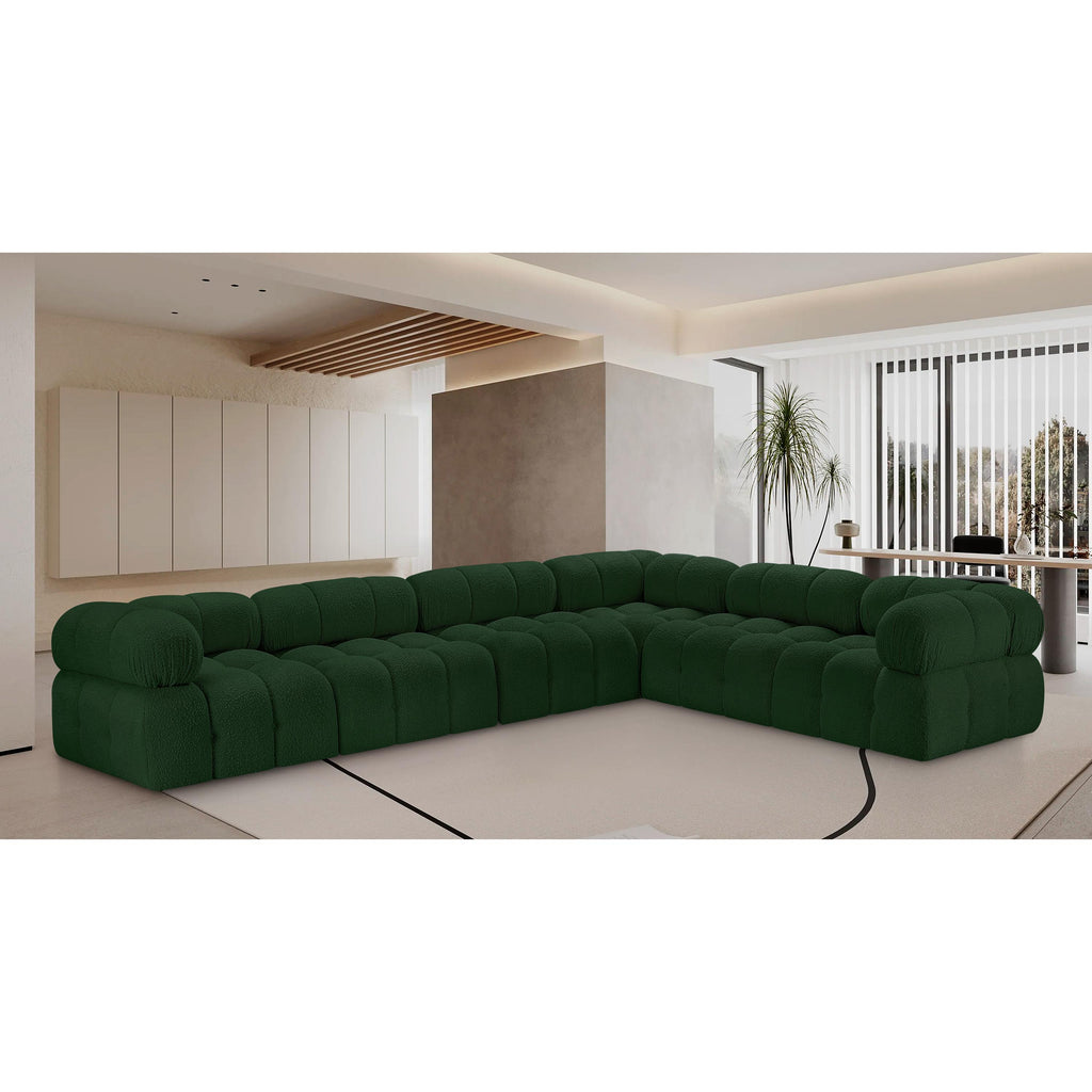 Meridian Ames 136" Green Boucle Fabric Upholstered 5 pc Modular Sectional