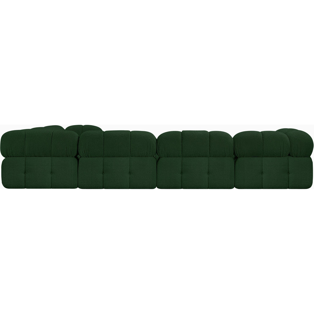 Meridian Ames 136" Green Boucle Fabric Upholstered 4 pc Modular Sofa