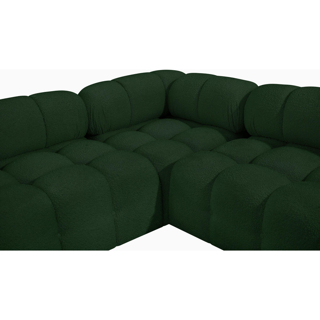Meridian Ames 102" Green Boucle Fabric Upholstered 5 pc Modular Sectional