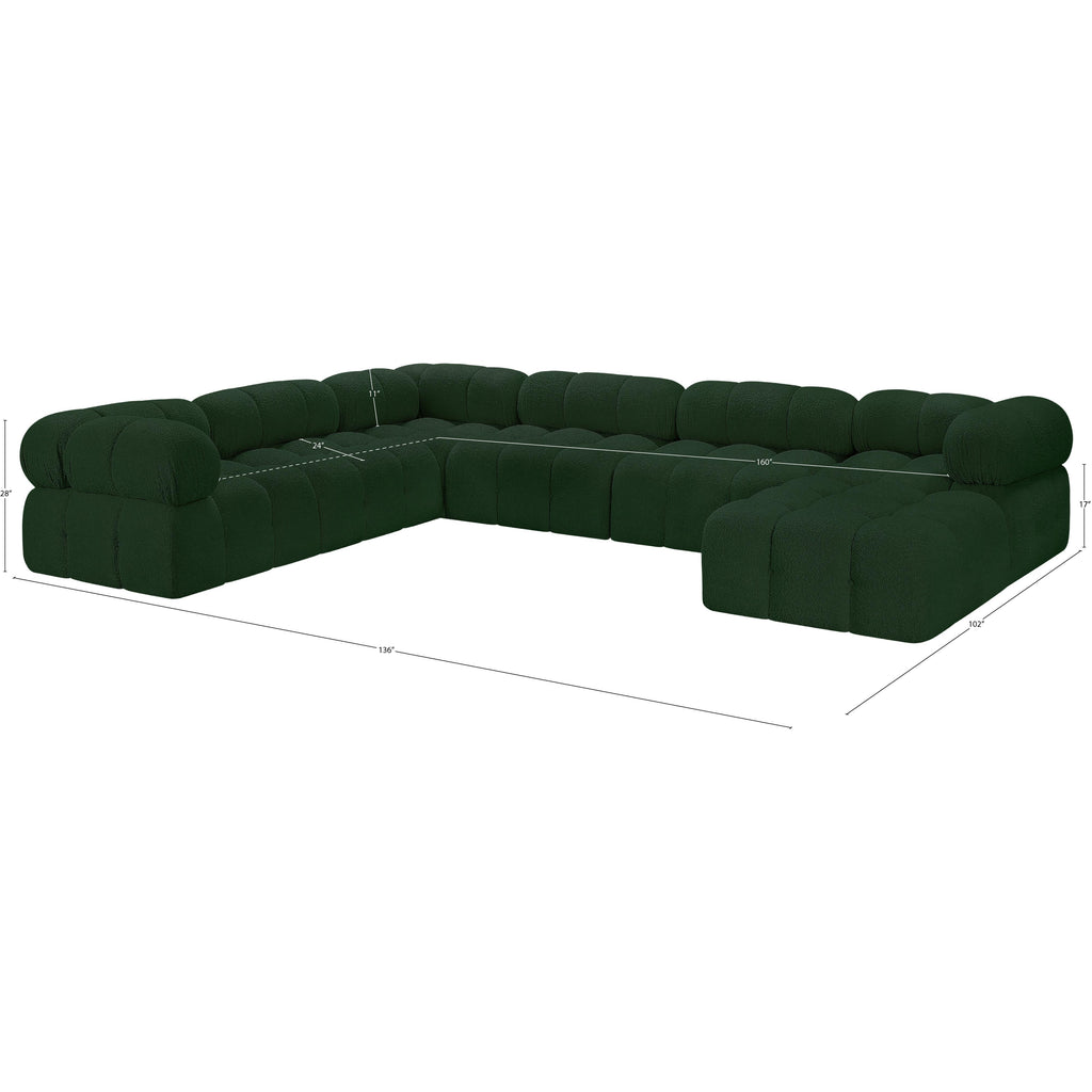 Meridian Ames 136" Green Boucle Fabric Upholstered 6 pc Modular Sectional