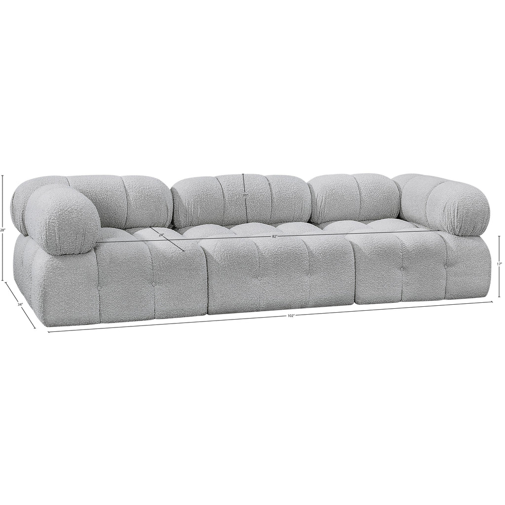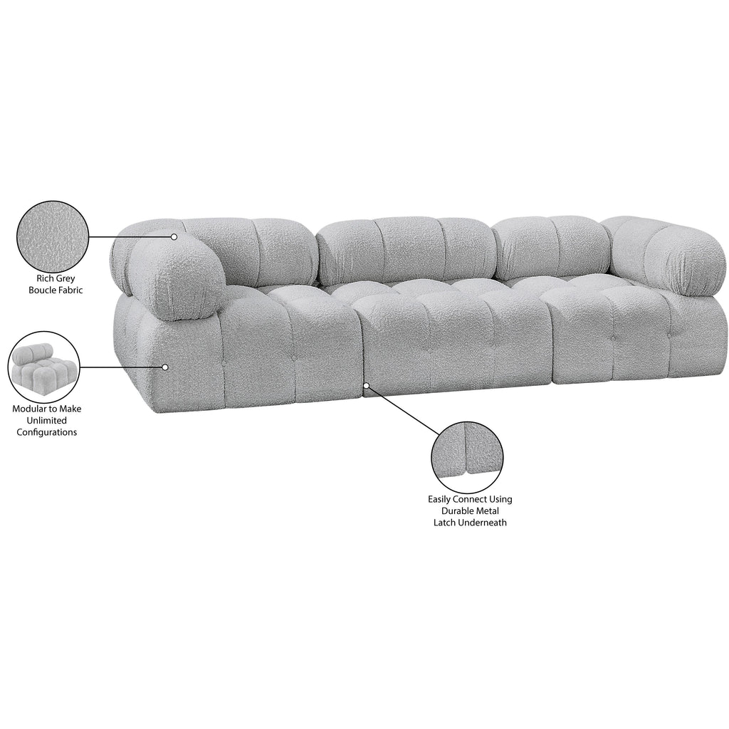 Meridian Ames 102" Grey Boucle Fabric Upholstered 3 pc Armless Modular Sofa