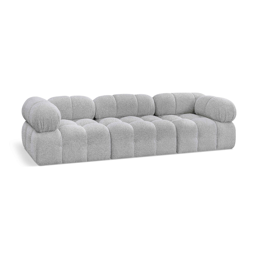 Meridian Ames 136" Grey Boucle Fabric Upholstered 4 pc Modular Sofa