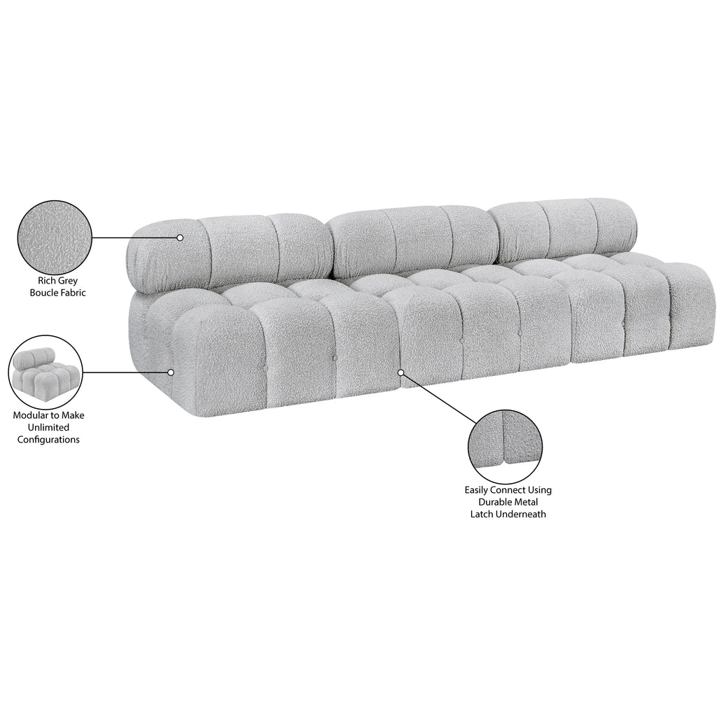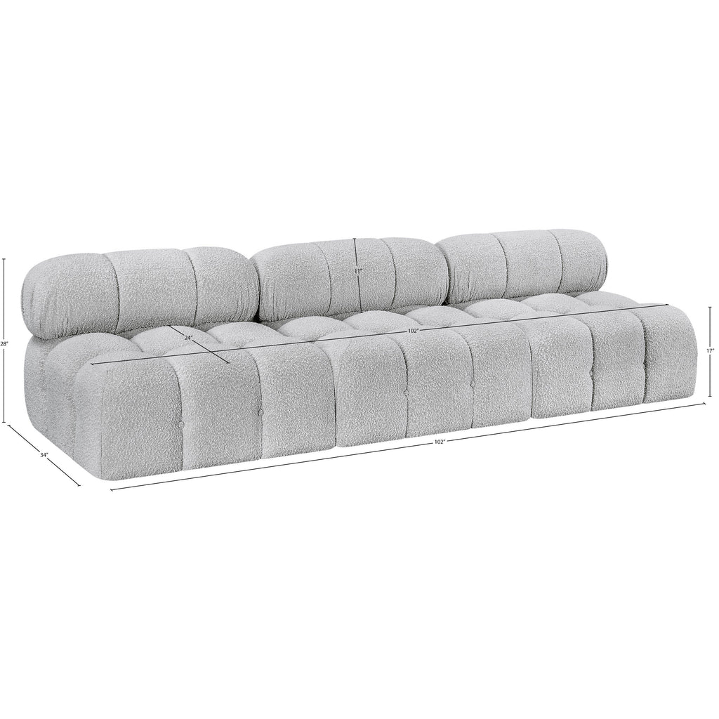 Meridian Ames 102" Grey Boucle Fabric Upholstered 3 pc Modular Sofa
