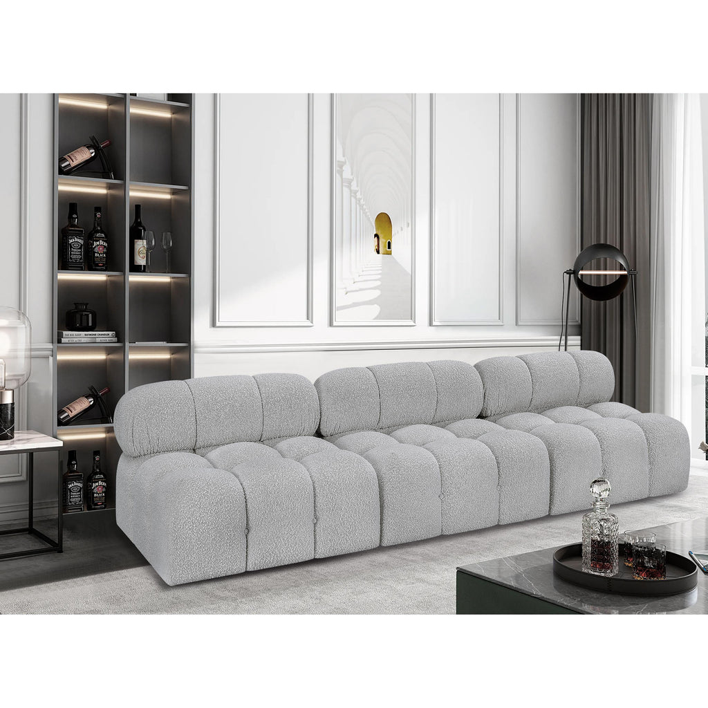 Meridian Ames 136" Grey Boucle Fabric Upholstered 4 pc Armless Modular Sofa