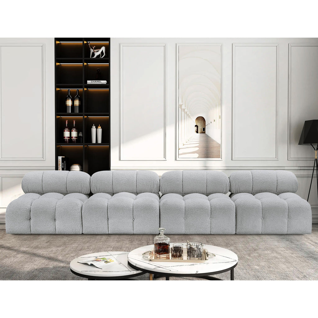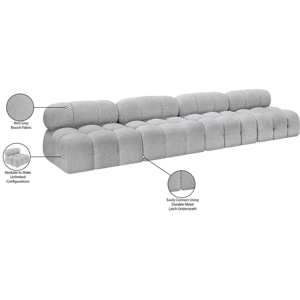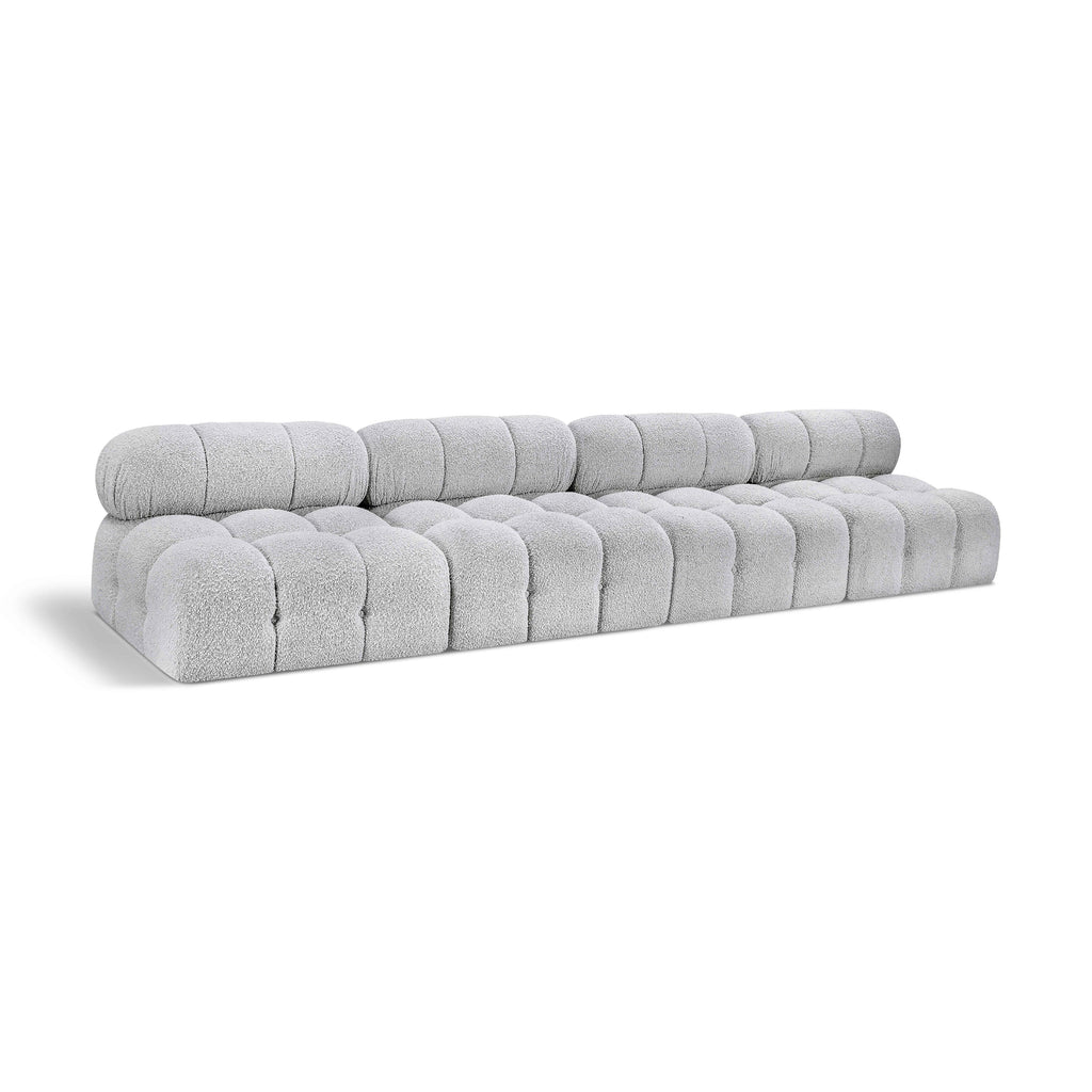 Meridian Ames 136" Grey Boucle Fabric Upholstered 4 pc Modular Sofa