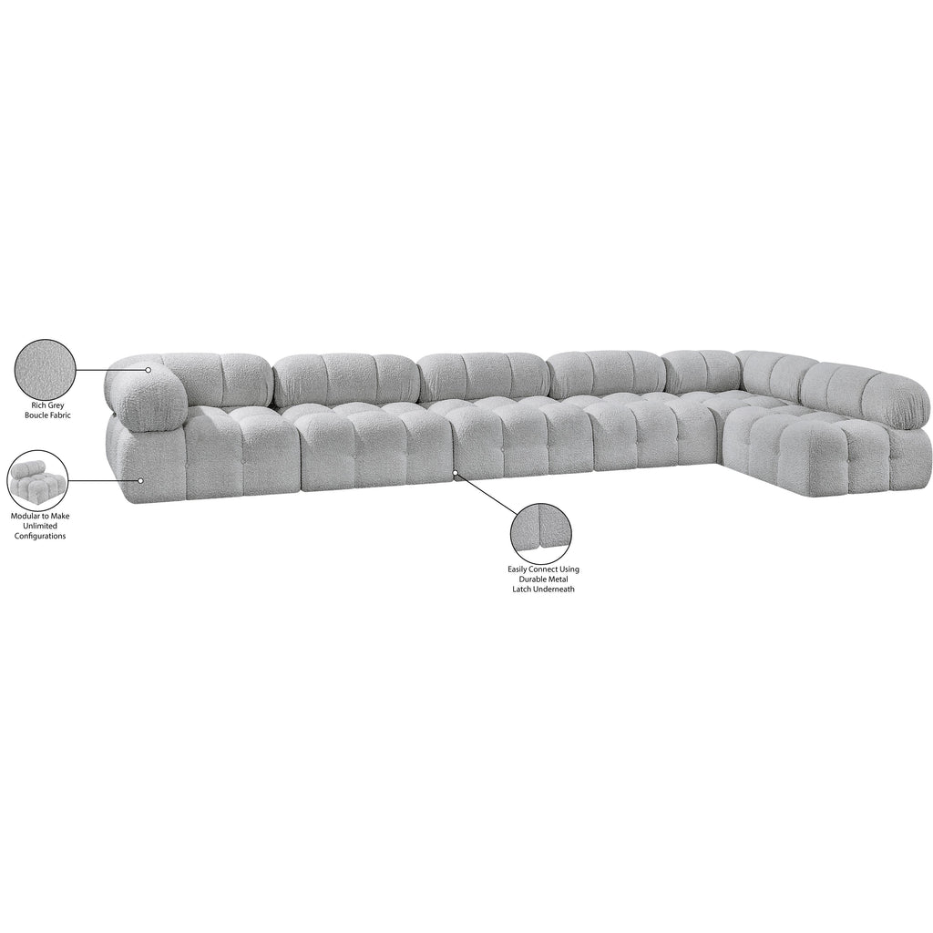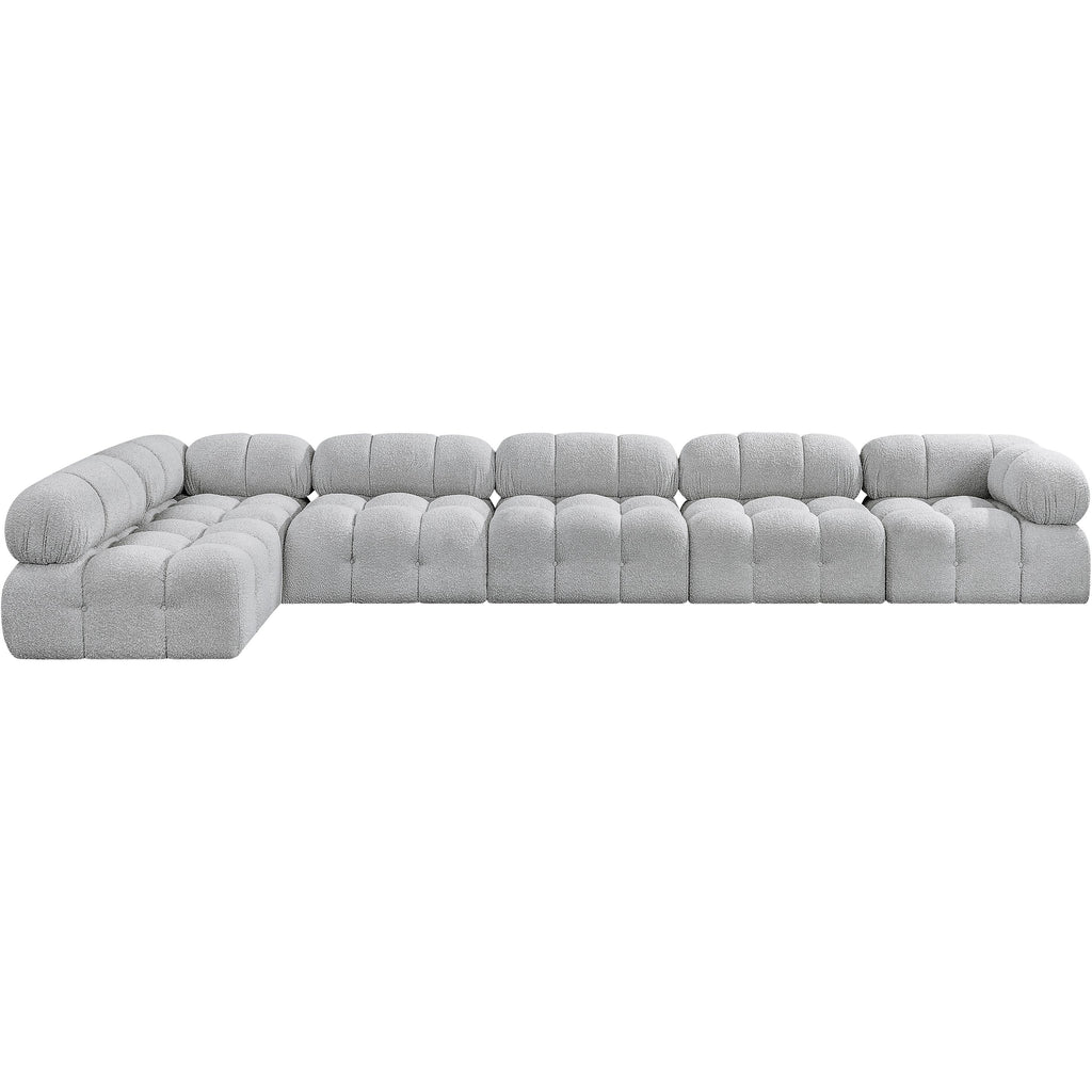 Meridian Ames 136" Grey Boucle Fabric Upholstered 6 pc Modular Sectional