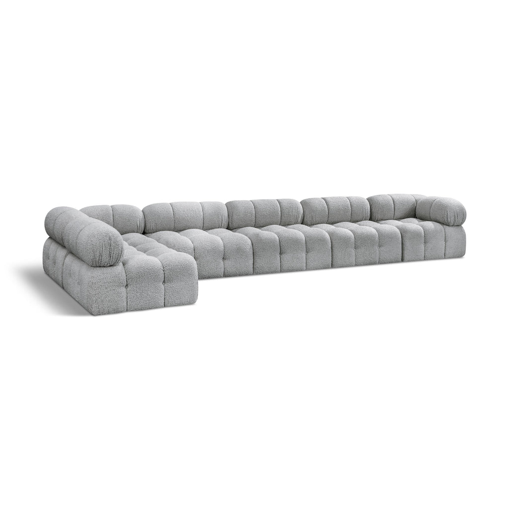 Meridian Ames 136" Grey Boucle Fabric Upholstered 4 pc Modular Sofa