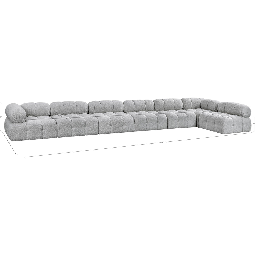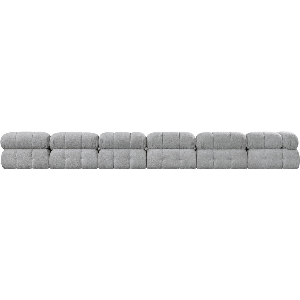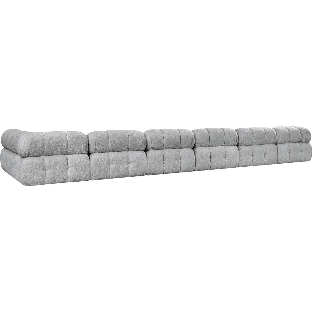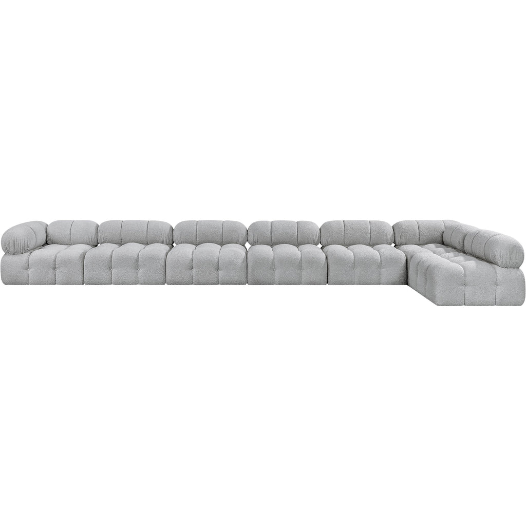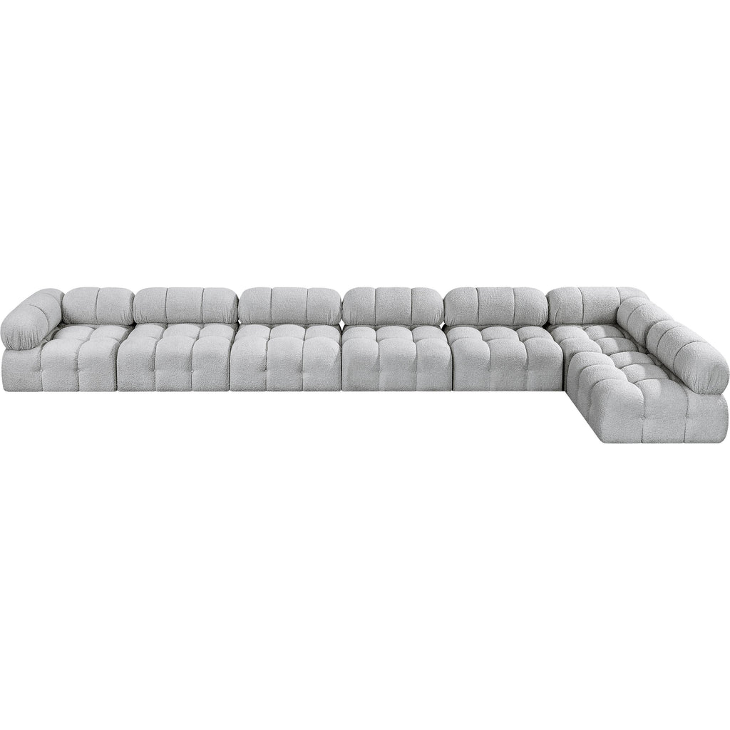 Meridian Ames 136" Grey Boucle Fabric Upholstered 6 pc Modular Sectional
